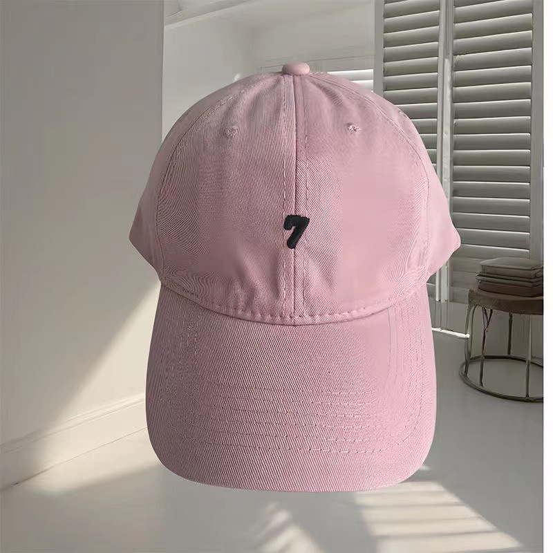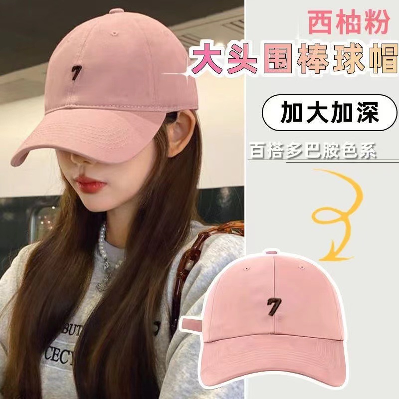 韩版简约刺绣数字7大头围粉色棒球帽女鸭舌帽宽帽檐显脸小帽子男