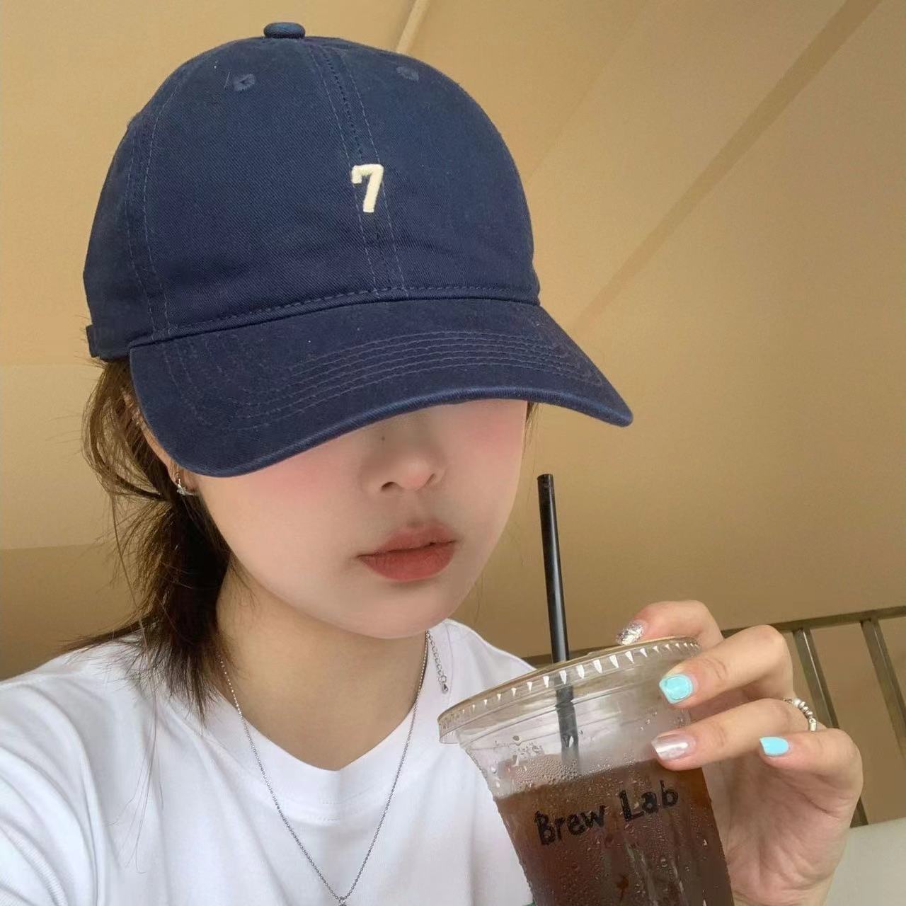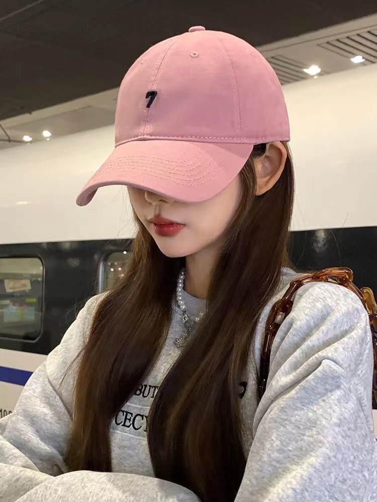 トレンディなブランド番号 7 刺繍野球帽女性の夏の韓国スタイルの新しい綿多用途ストリート顔小ひさしキャップ