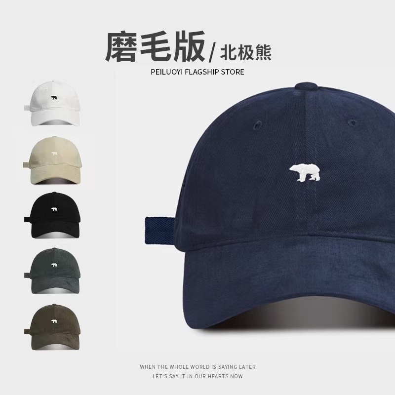高品质磨毛北极熊刺绣棒球帽女夏季新款宽檐显脸小鸭舌帽