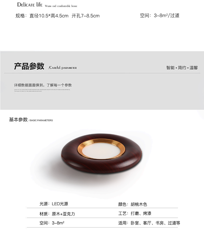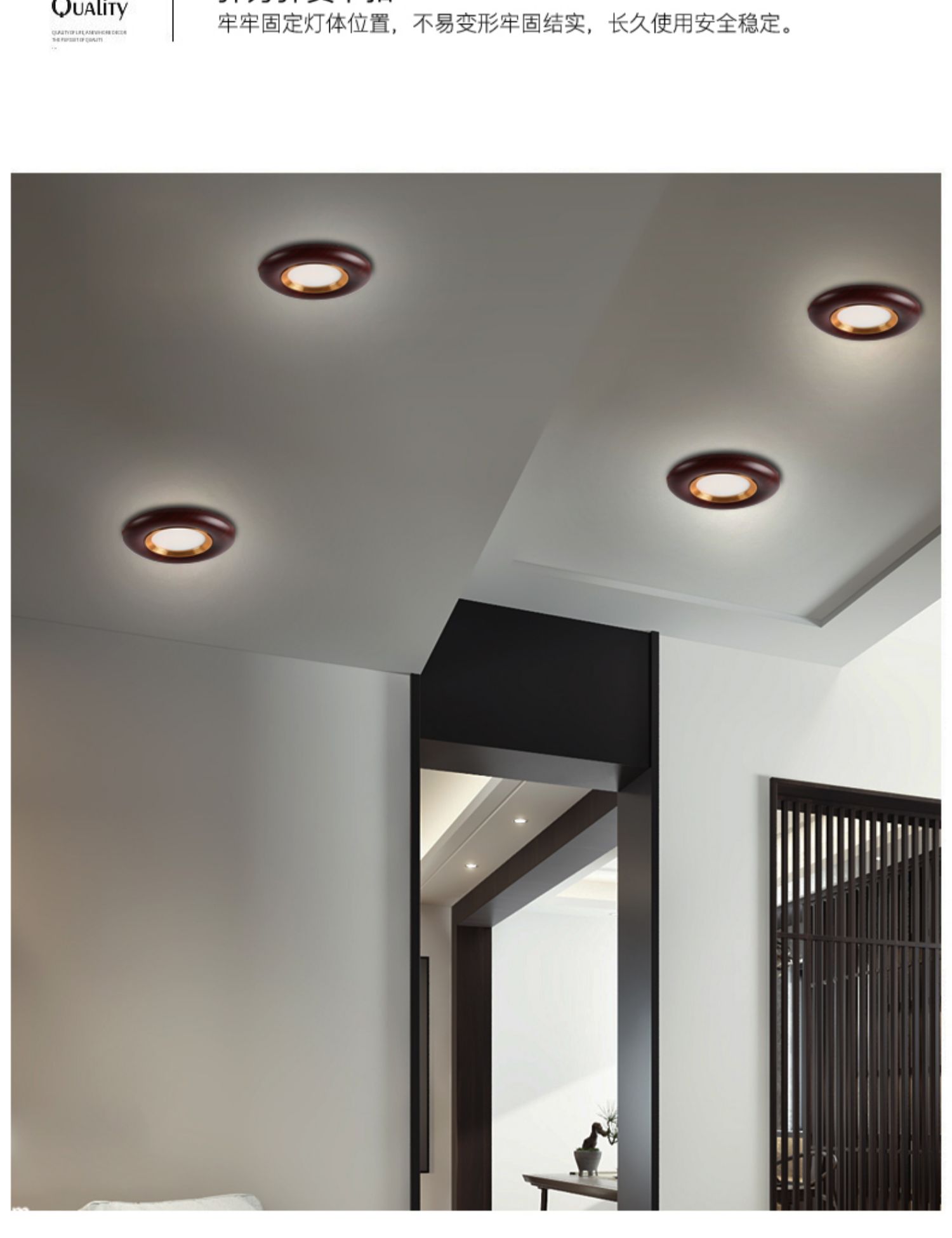 新中国式ダウンライト胡桃色スポットライト通路玄関led天井ランプ家庭用埋め込み式ダウンライト