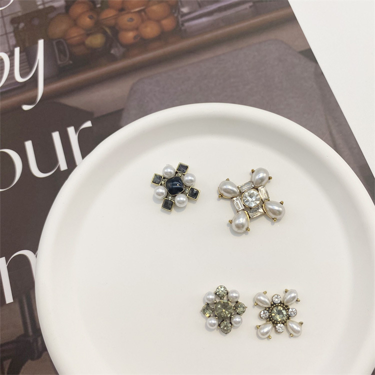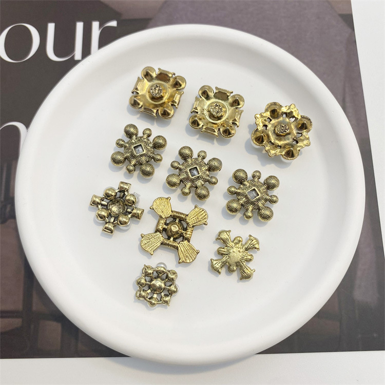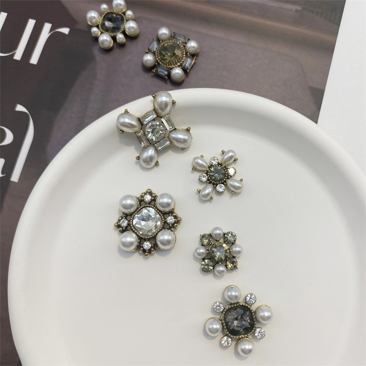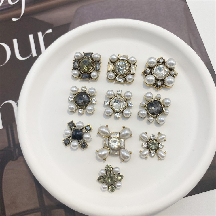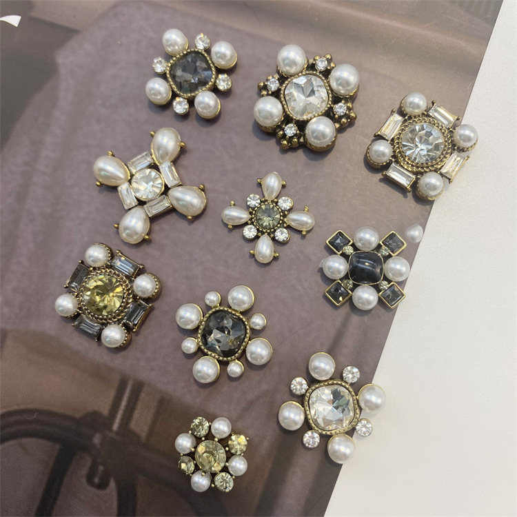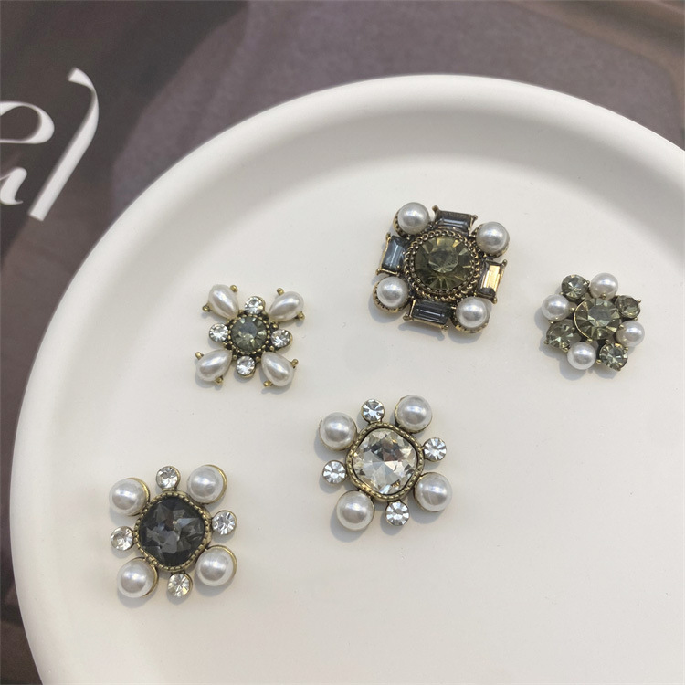 レトロ満ドリル真珠花盤合金部品気質小香服装ボタン材料DIY髪飾り靴花アクセサリー