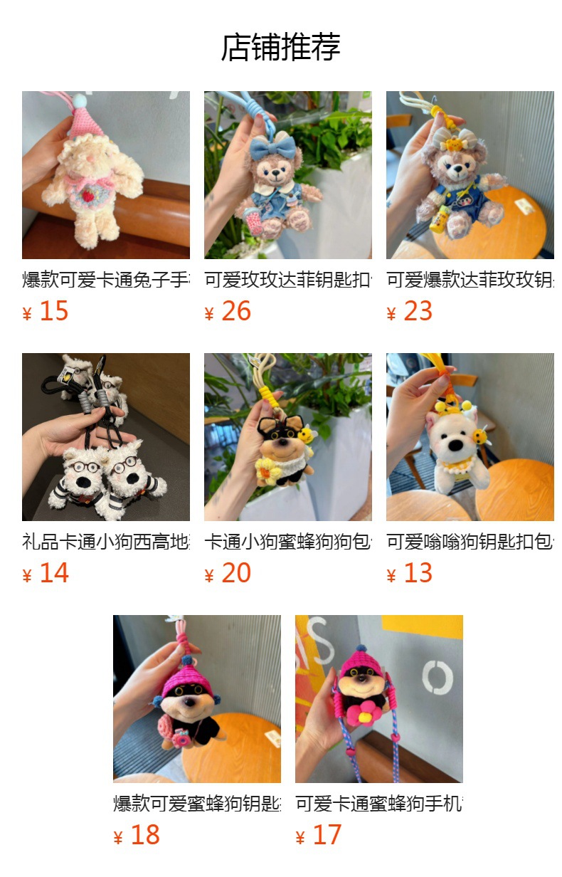 新商品のシェリー玫達菲は服を着て人形を包んでキーホルダーを掛けてかわいいぬいぐるみを飾ります。