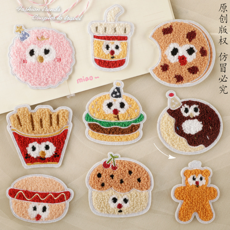 つのクールなオリジナルのタオルは食べ物を刺繍してハンバーガーのポテトを遊びます。