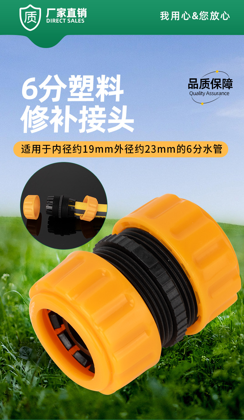 6分突合せ蛇皮管補修延長クイックジョイント水道管ホース延長プラスチック洗車水鉄砲接続反駁
