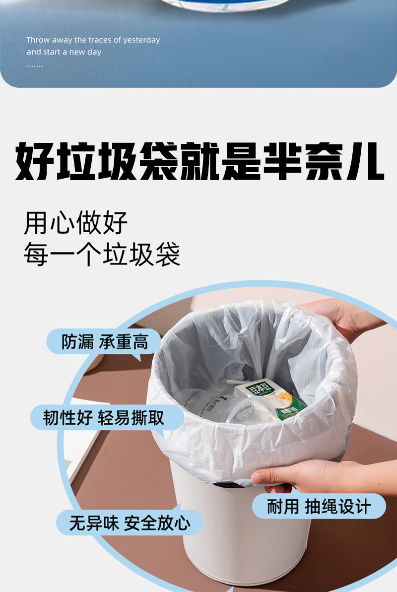 山茶花印花抽绳垃圾袋加大清洁宿舍家用手提式抽绳厨房特厚塑料袋