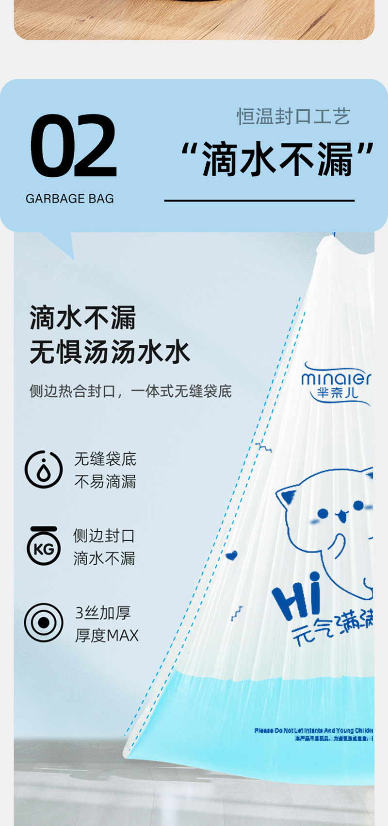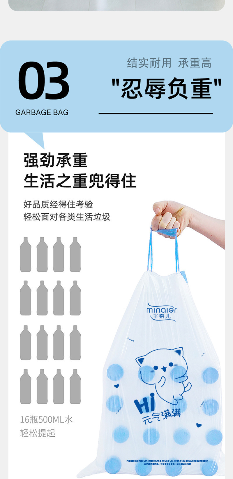 新款芈奈儿元气满满大卷印花加大加厚一次性抽绳式垃圾袋家用厨房