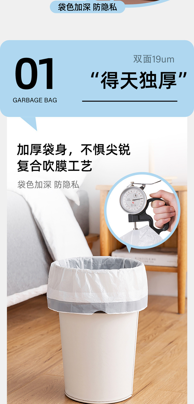 ちぎれないゴミ袋家庭用厚手のキッチン専用寮のひも引き衛生袋の引き出し式の特厚袋