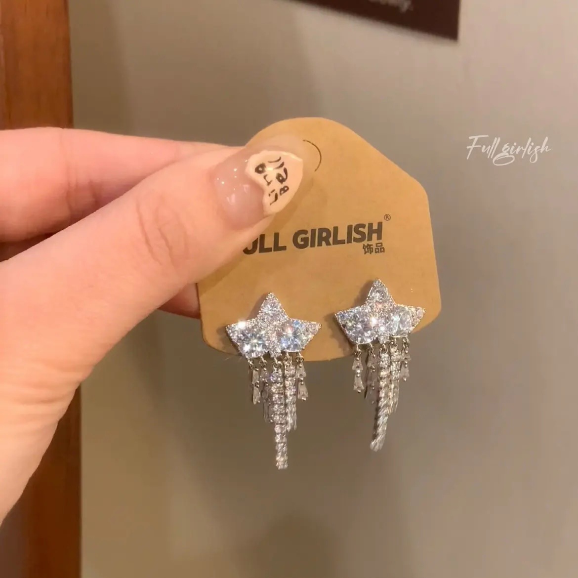 流蘇八芒星ピアス925銀針高級感耳飾りファッションシンプルで洗練されたイヤリング秋冬