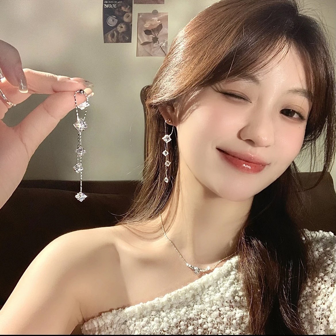 925銀針イヤリング嬌欲白富美アルファベットジルコン流蘇イヤリング小衆独特高級感気質耳飾り