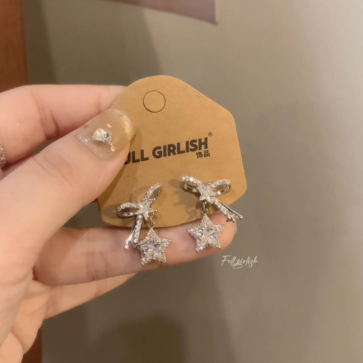 不規則な蝶結びのジルコンの星はイヤリングの925銀の針の高級感を掛けます。