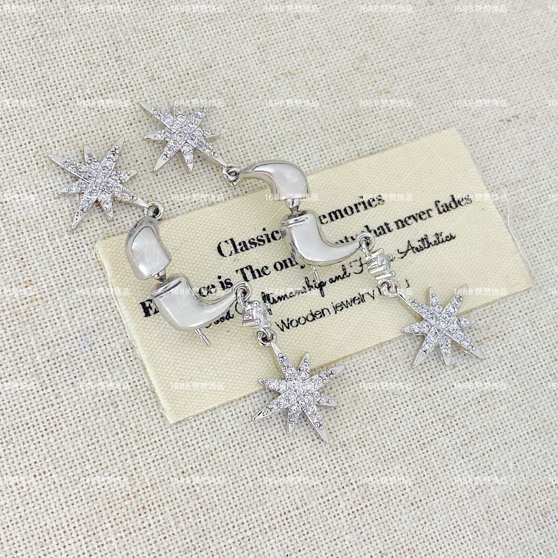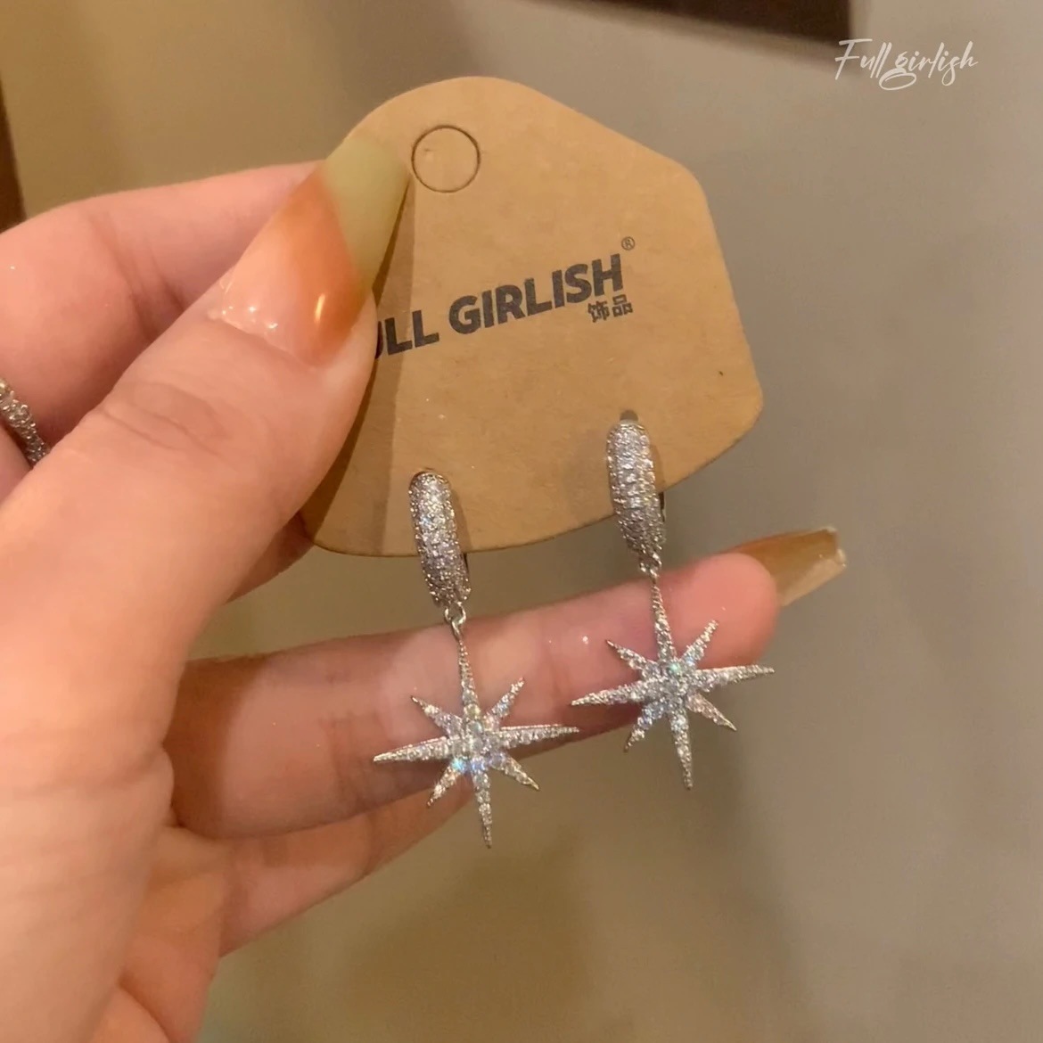 韓系超閃八芒星ジルコンピアス925銀針高級感ピアス