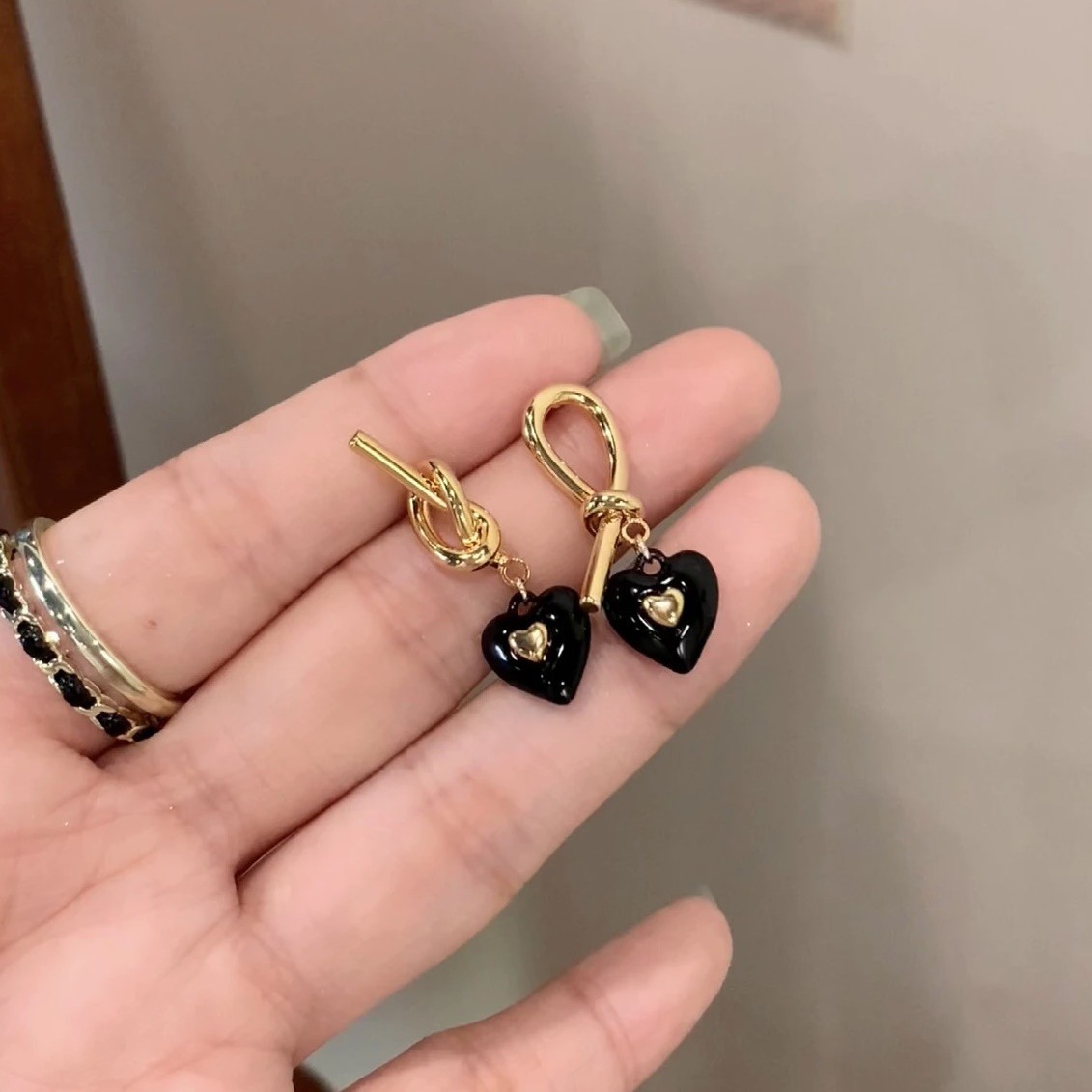 925 シルバー針ハイエンドイヤリングレトロブラックラブイヤリングパーソナライズされたファッション多用途非対称ノットデザイン