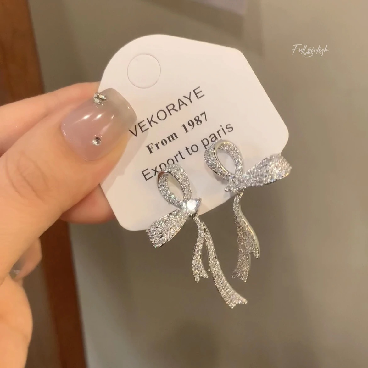 千金のような気質のマイクロインレイジルコニアリボンイヤリング、925シルバーピン、個性的なデザインのイヤリング、高級感のある女性用イヤリング