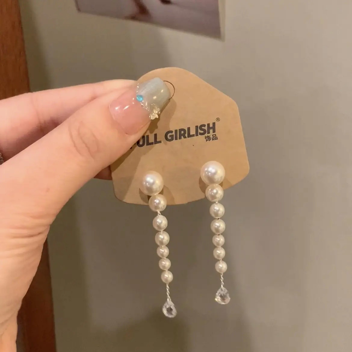 925シルバーニードル高級パールリボンフリンジイヤリング女性用スイートエレガントファッション気質万能イヤリング