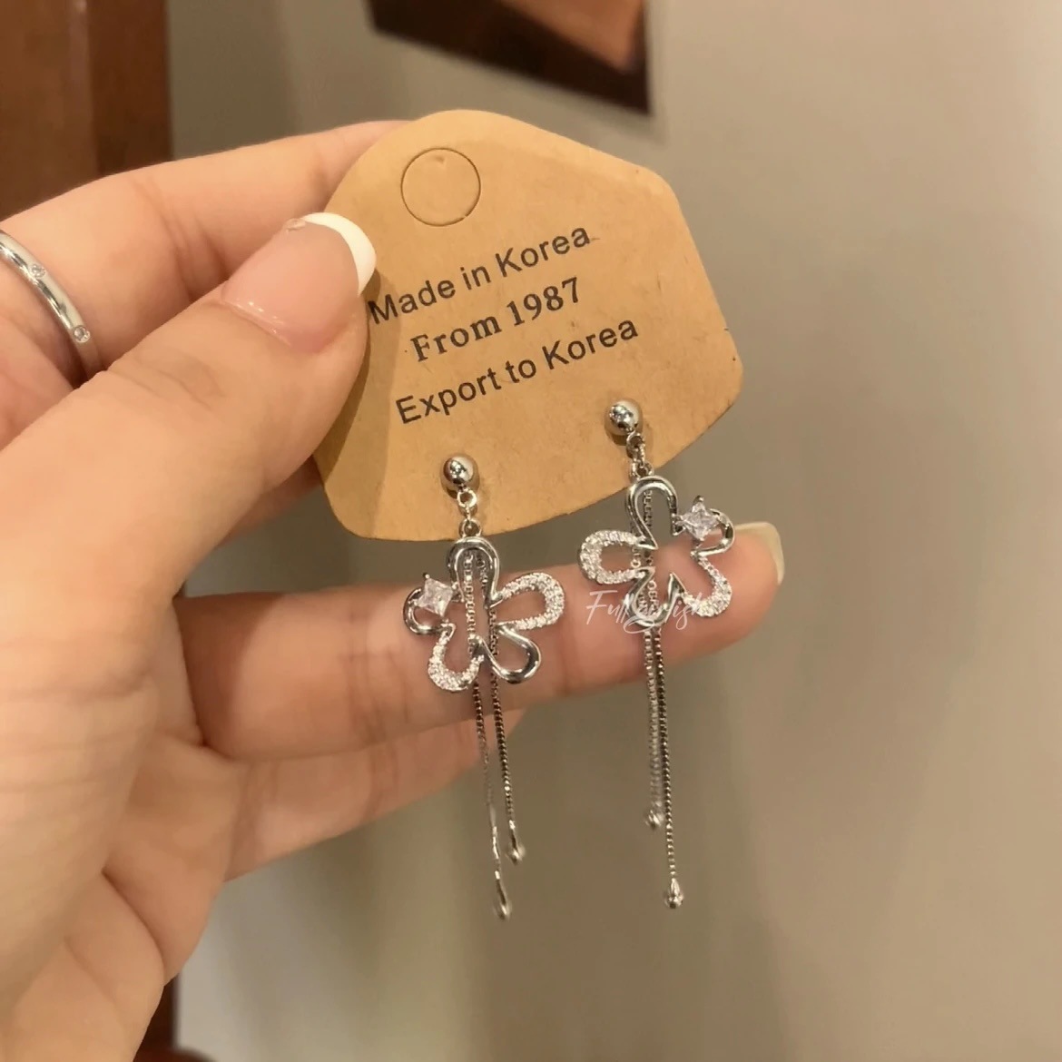 マイクロ象嵌ジルコンフラワータッセルイヤリング925シルバー針ファッショナブルな気質多用途レディエレガントなハイエンドイヤリング