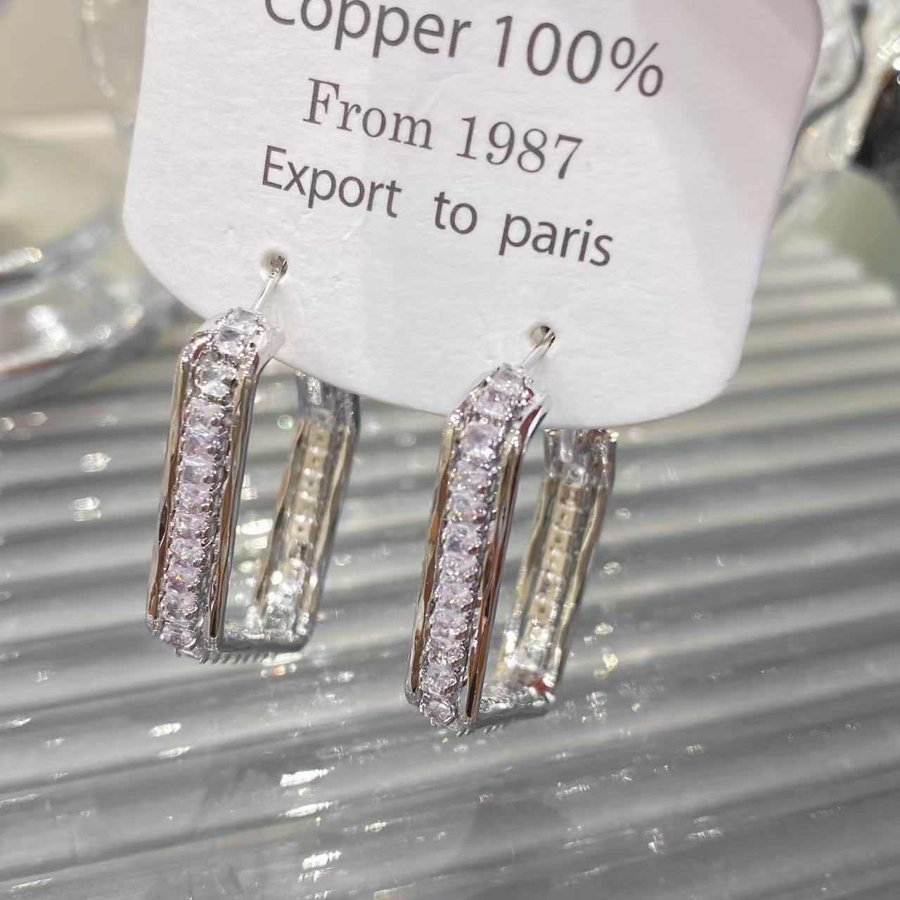 新しい幾何学的なスクエアイヤリング、ファッショナブルで輝くジルコンイヤリング、クールでエレガントな着用必須のイヤリング
