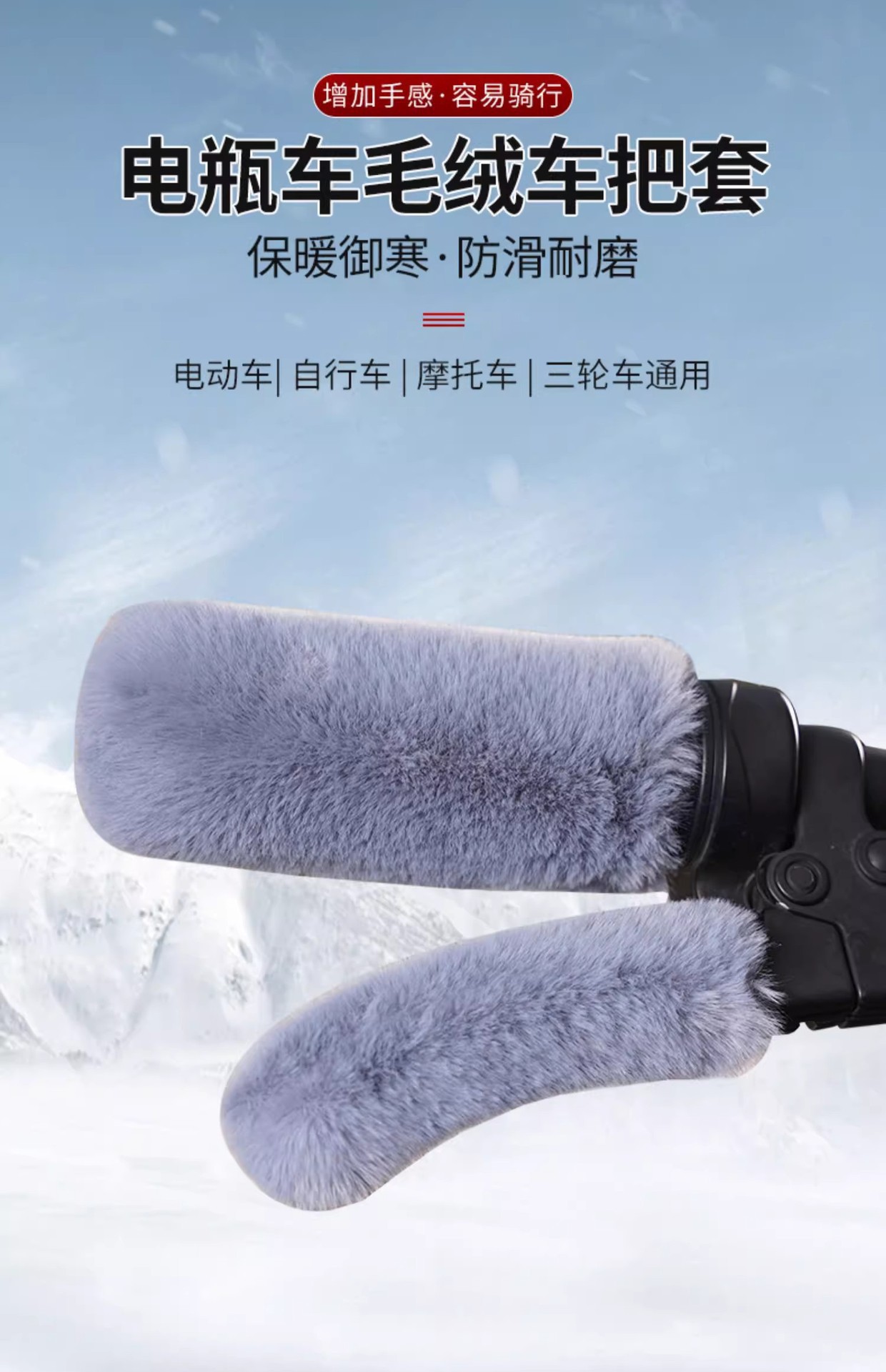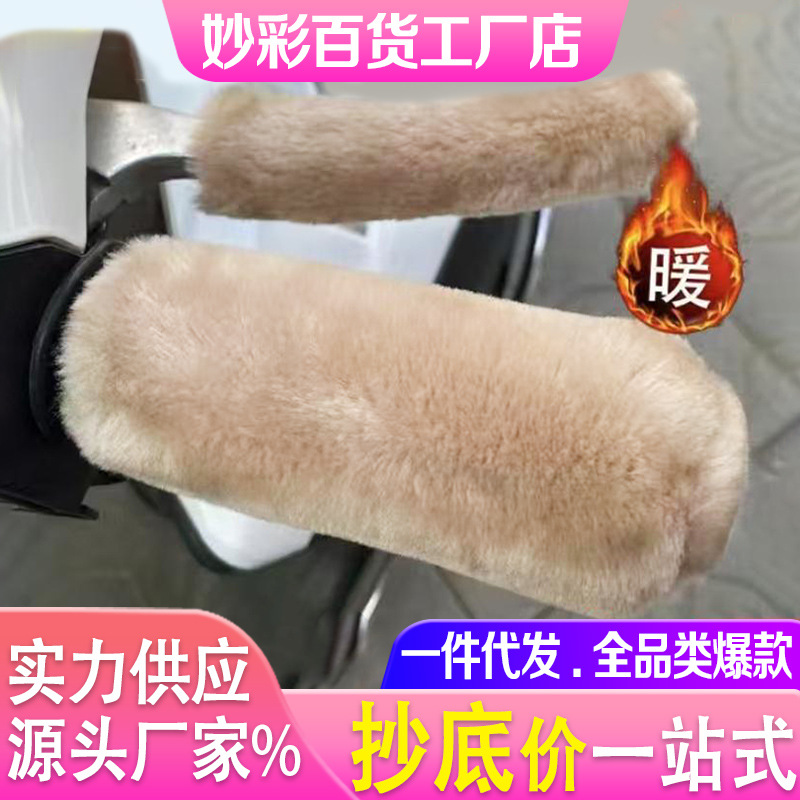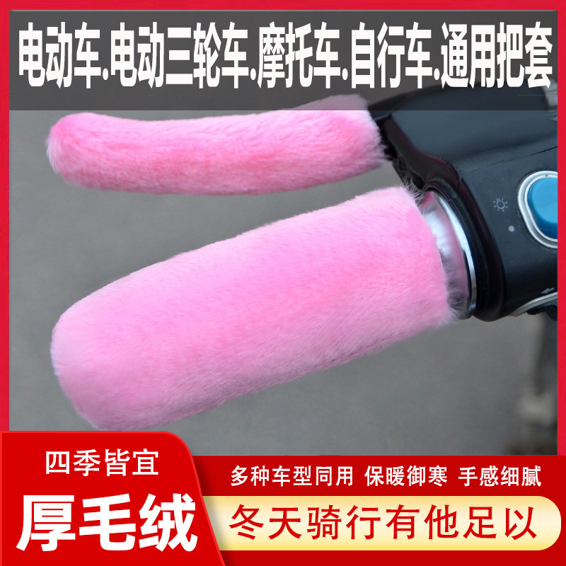 毛绒电动车把手套秋冬季保暖防寒仿兔毛加绒加厚摩托电瓶车手把套