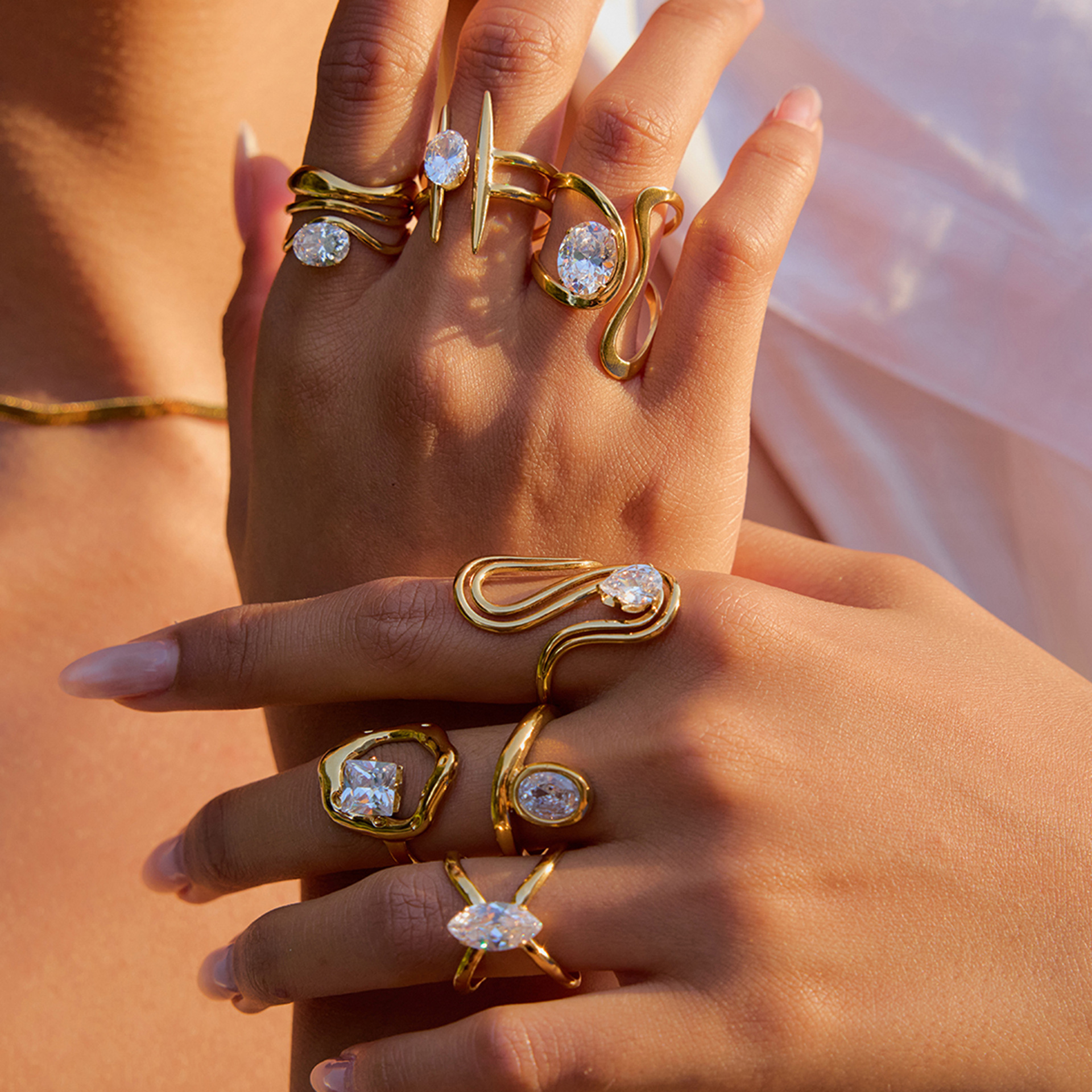 Wanxing ヨーロッパとアメリカのクロスボーダー INS スタイルライト高級ハイエンドコンビネーションオープンリング 18 18k ゴールドステンレス鋼リングハンドジュエリー