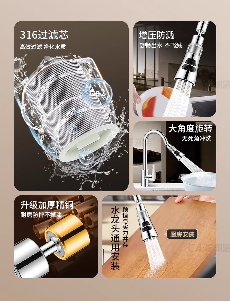 キッチン蛇口エクステンションユニバーサル回転可能家庭用フィルター浄水3段阶スクラッチスプラッシュヘッド水ノズルジョイント