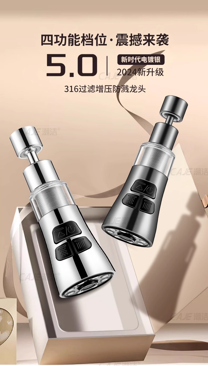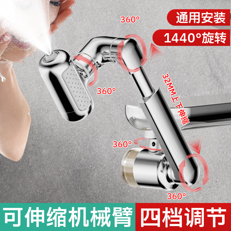 新款全铜外贸专供四档飞雨喷雾柔水伸缩机械臂万向龙头延伸可旋转