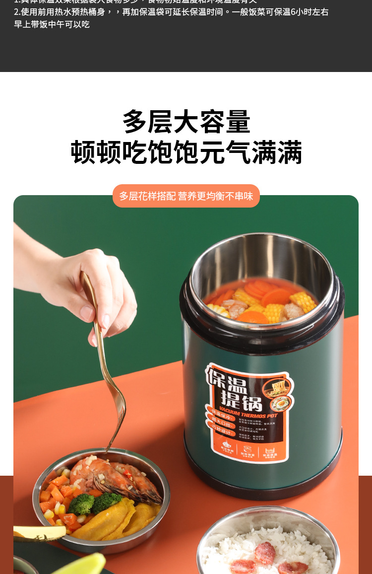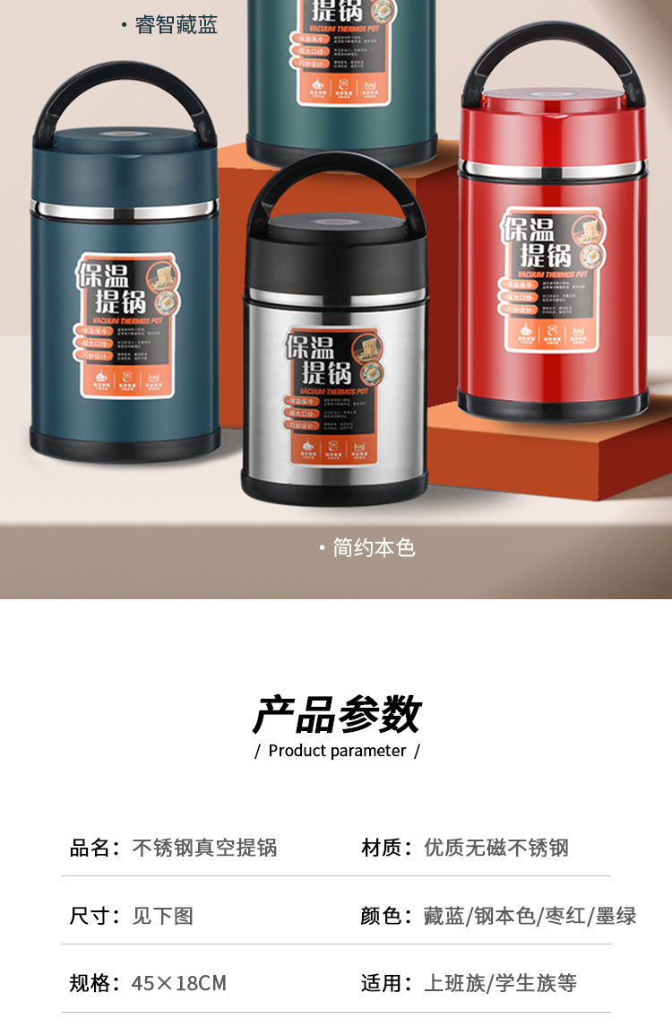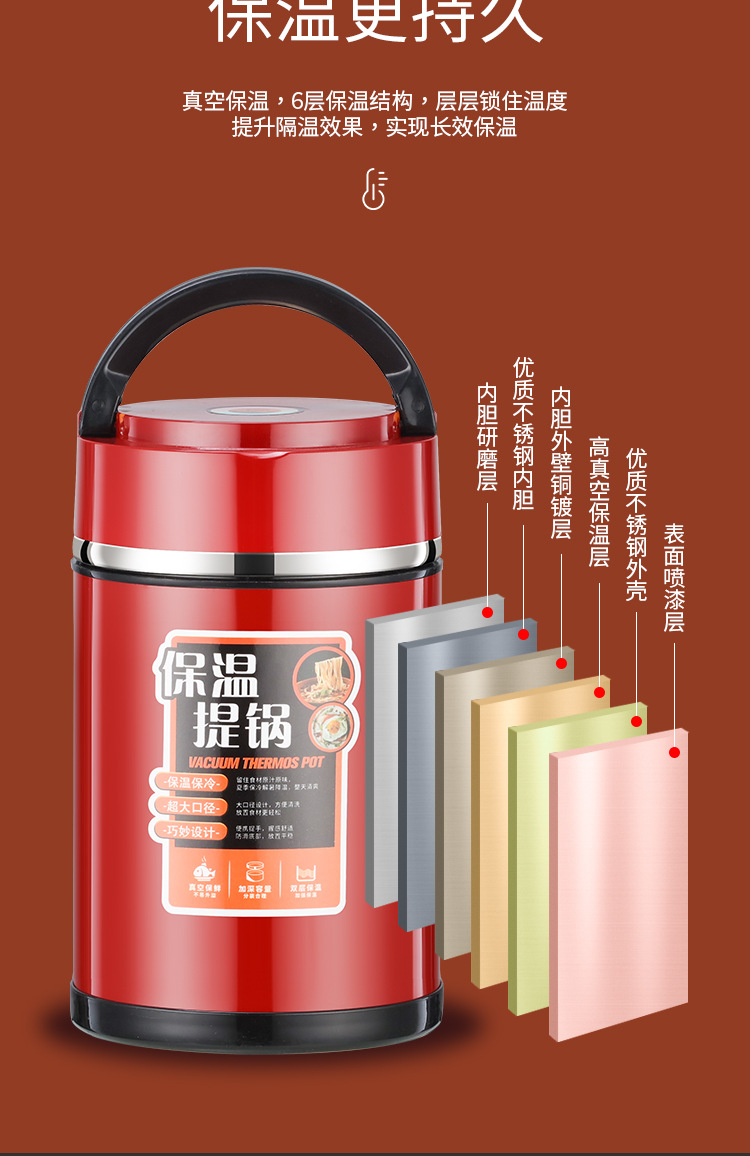 ステンレス真空提鍋大容量多層密封弁当箱学生サラリーマン提鍋桶
