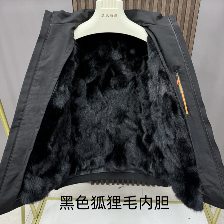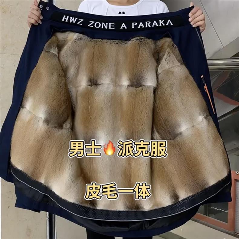 派克服男士整貂内胆冬季新款皮毛一体外套仿水貂绒中长款皮草大衣