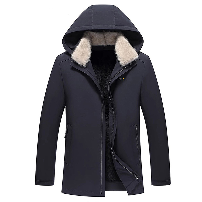 新款冬季男士保暖加绒加厚内胆皮草派克服商务休闲中长款冬季外套