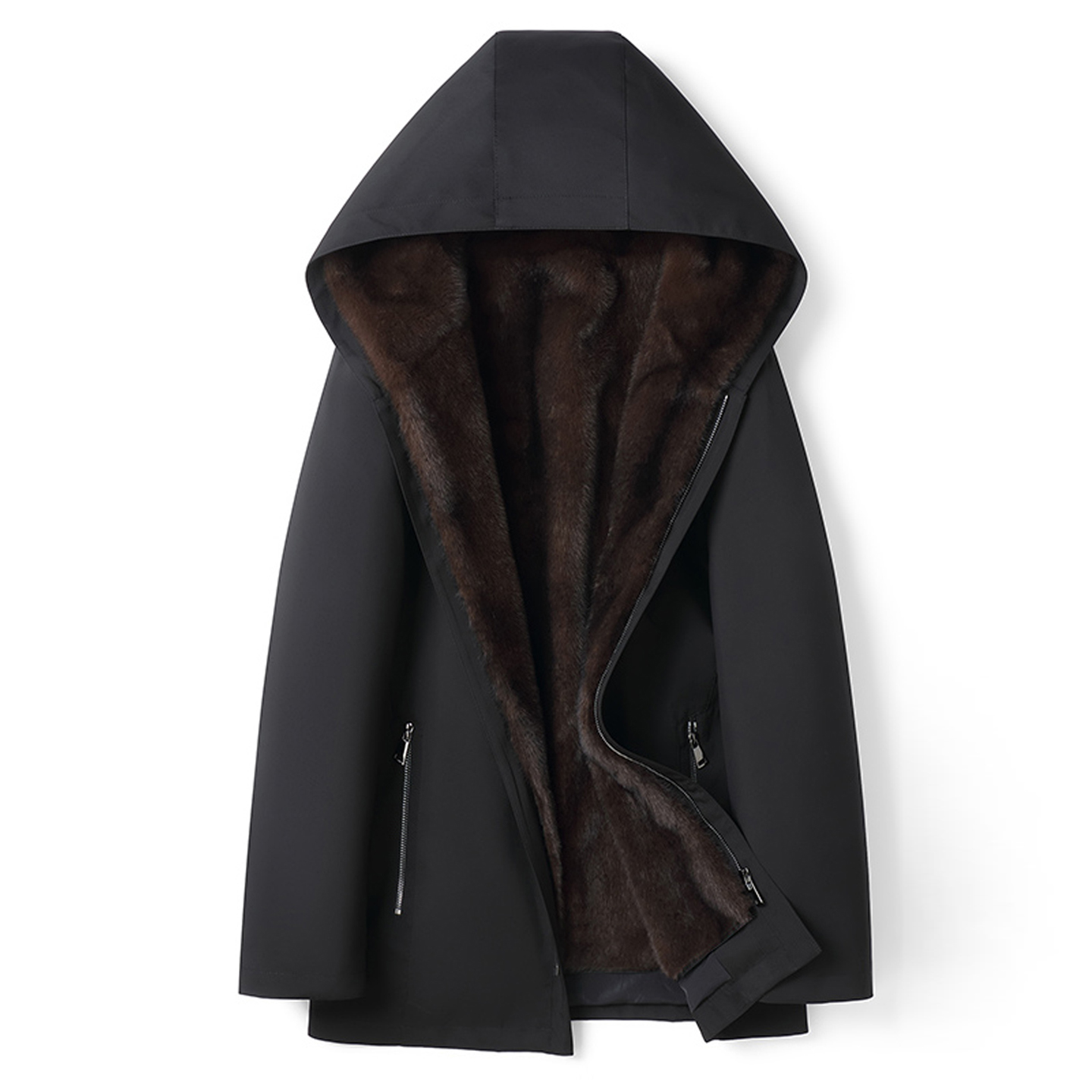 2025 冬の新パーカー毛皮コートメンズミッドレングス取り外し可能な模造ミンクライナー模造ミンクベルベットコート