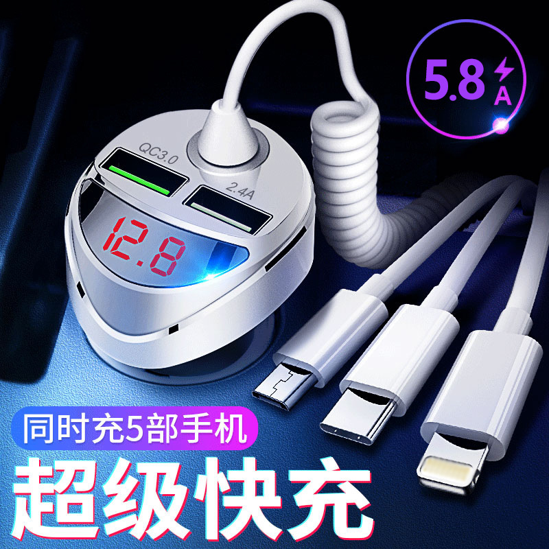 车载充电器超级双口快充头多功能点烟器转换插头汽车通用兼容车充