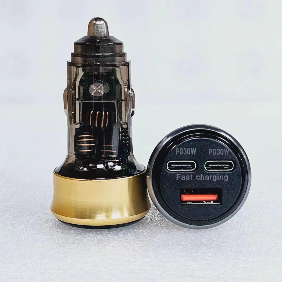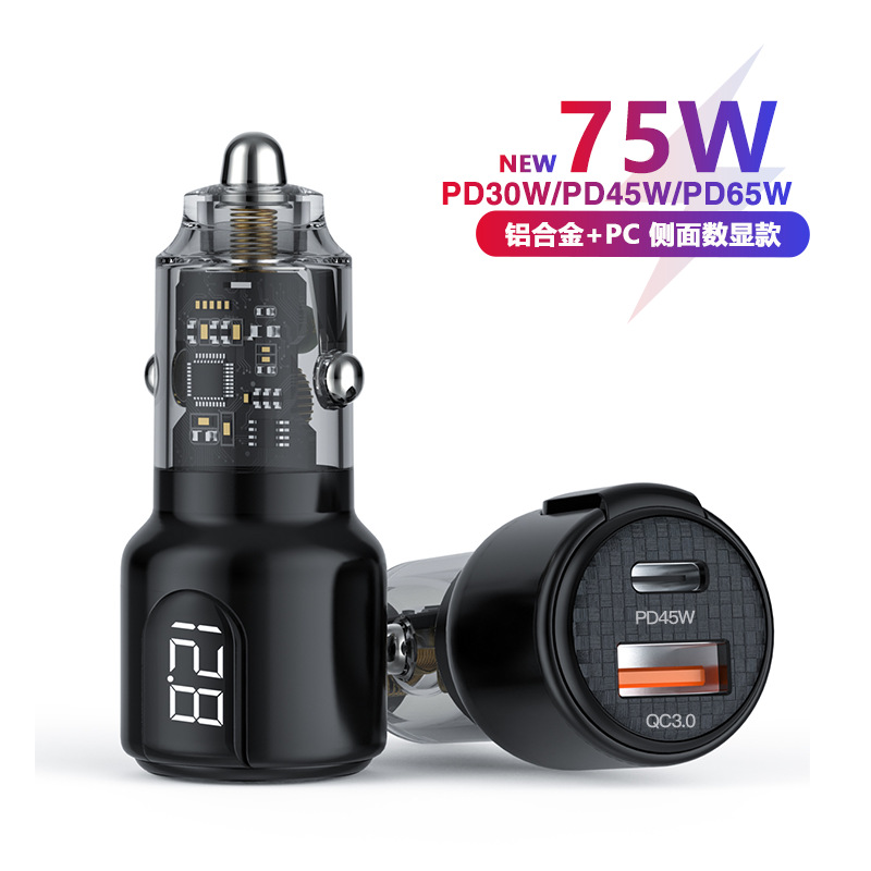 新型車載充電器金属デジタル表示透明pd45wハイパワー車充電アップルサムスンpps超速充