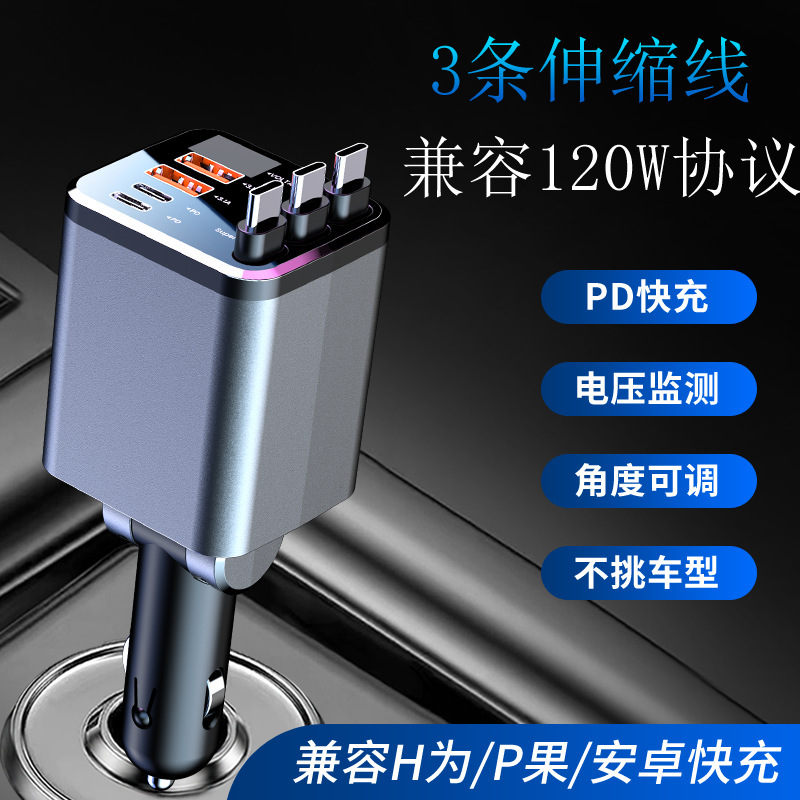 新款跨境车载华为多头手机充电器七合一伸缩线多功能高档车充爆款