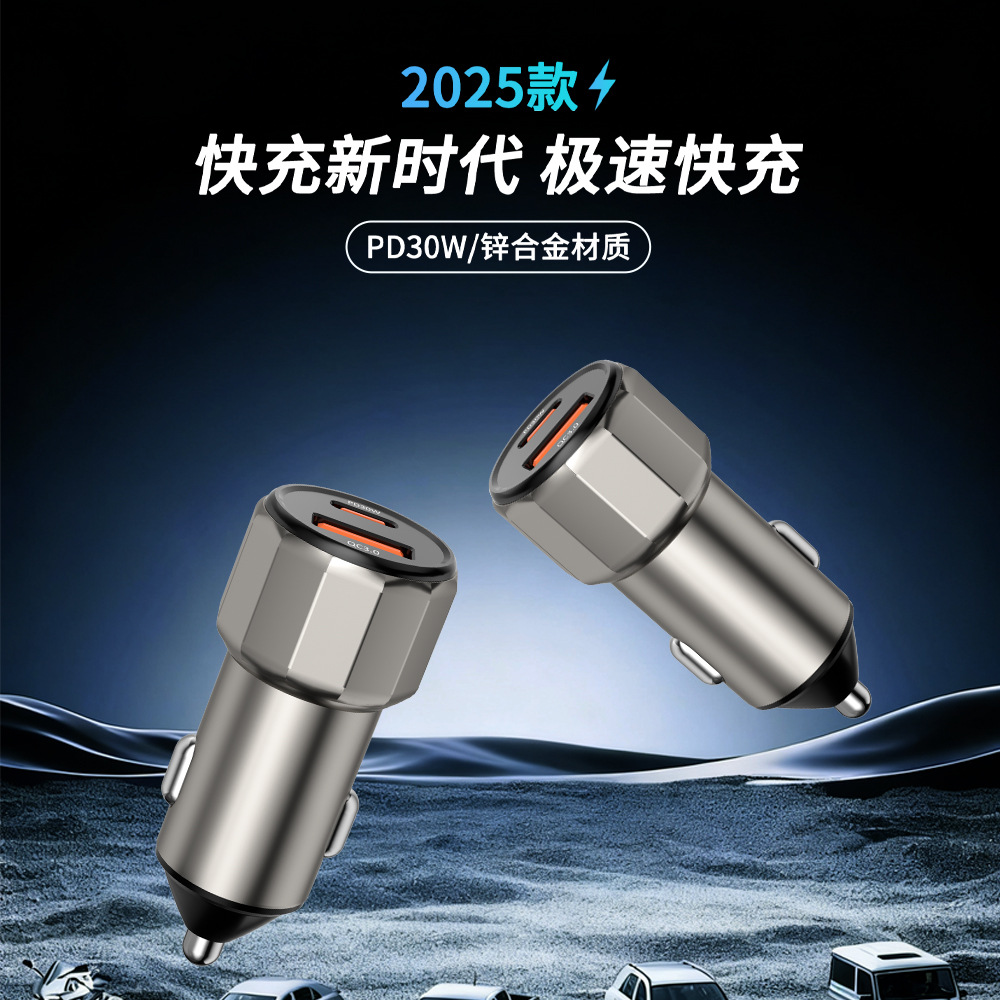 私模通用全协议车充超级快充100W一拖二qc充电头pd30W车载充电器