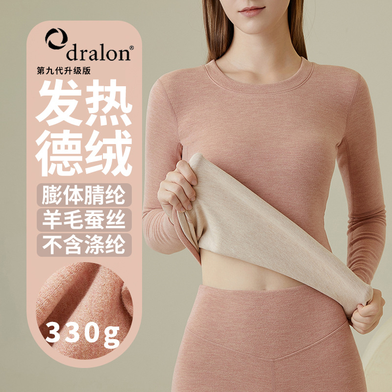 330gウールシルク徳絨毛の女性モデルは、丸首長袖保温発熱シャツL415