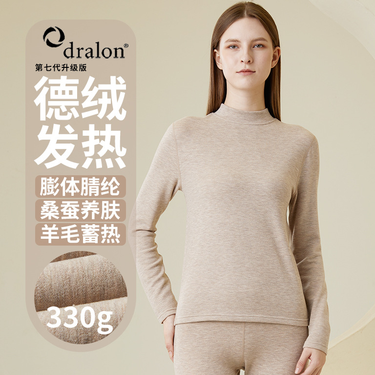 330gウールシルク混紡デロン女性用ハーフタートルネック長袖保温インナーウェアパンツL417L420