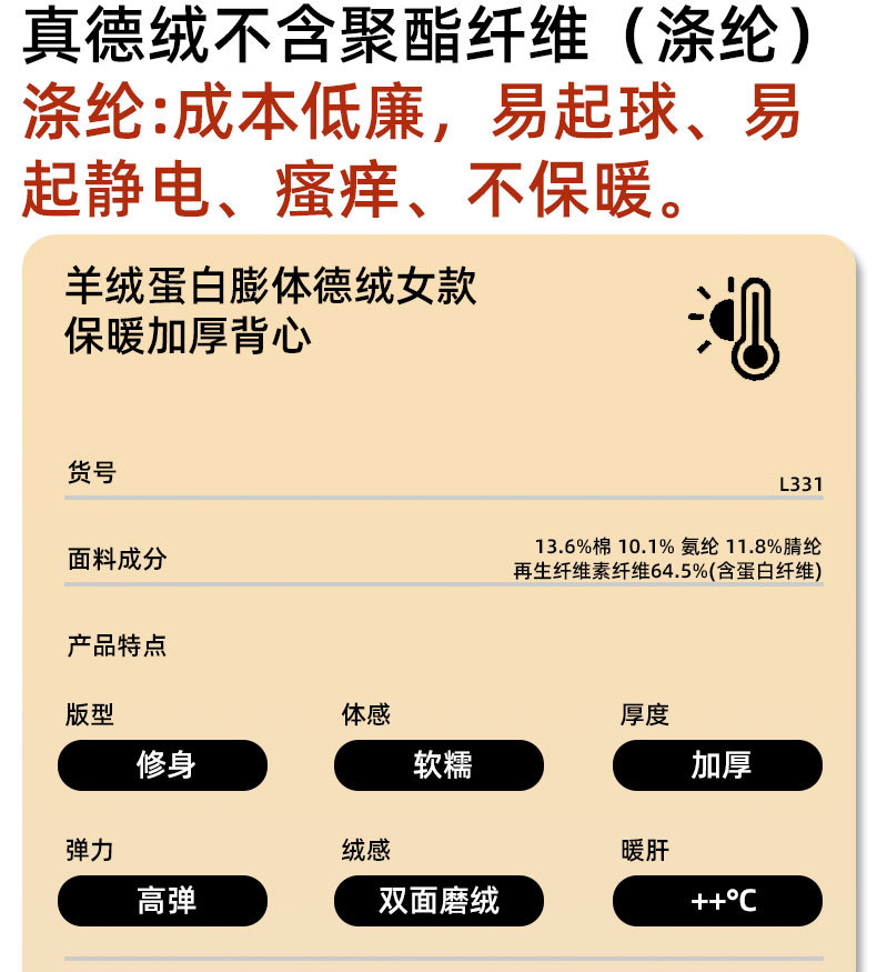 330g両面磨毛徳絨毛無痕ウールシルク発熱保温ベスト女性ベルベット底l413
