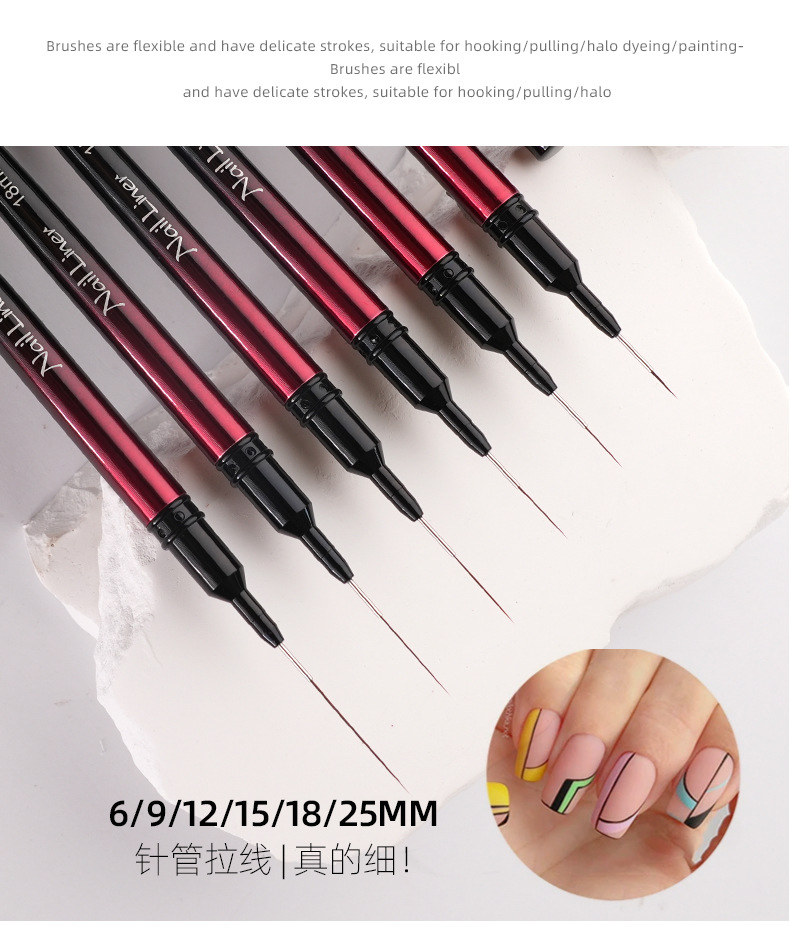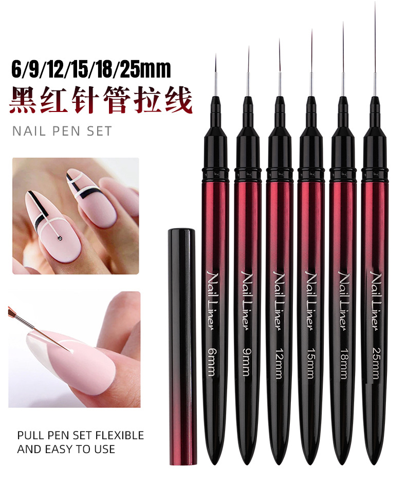 国境を越えた新しいネイルアート針管ドローイングペン黒赤金属棒ネイルアートブラシセットドローイングネイルブラシ