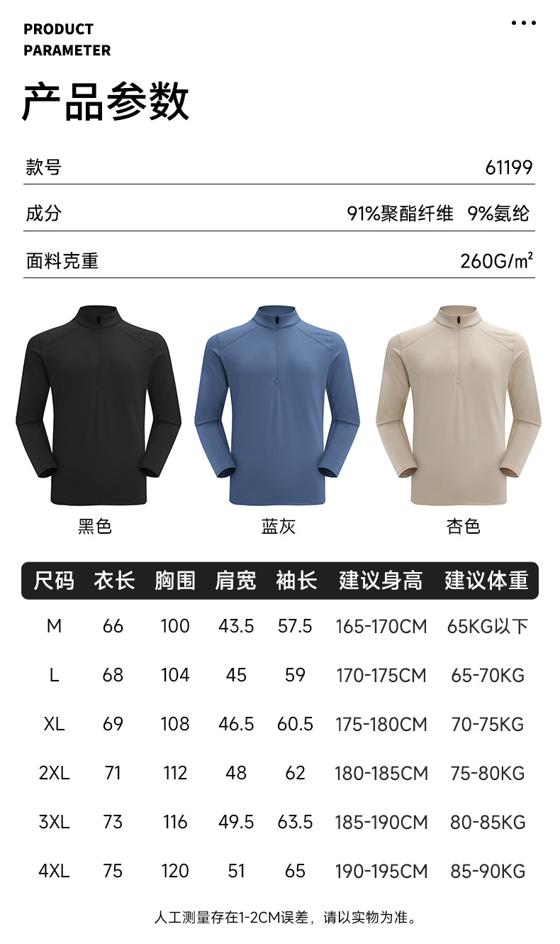 迪桑平替秋季半拉链运动卫衣男士健身户外都市机能压胶长袖T恤衫