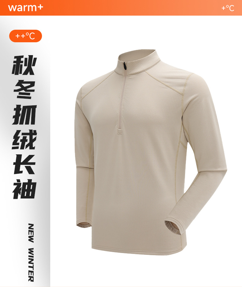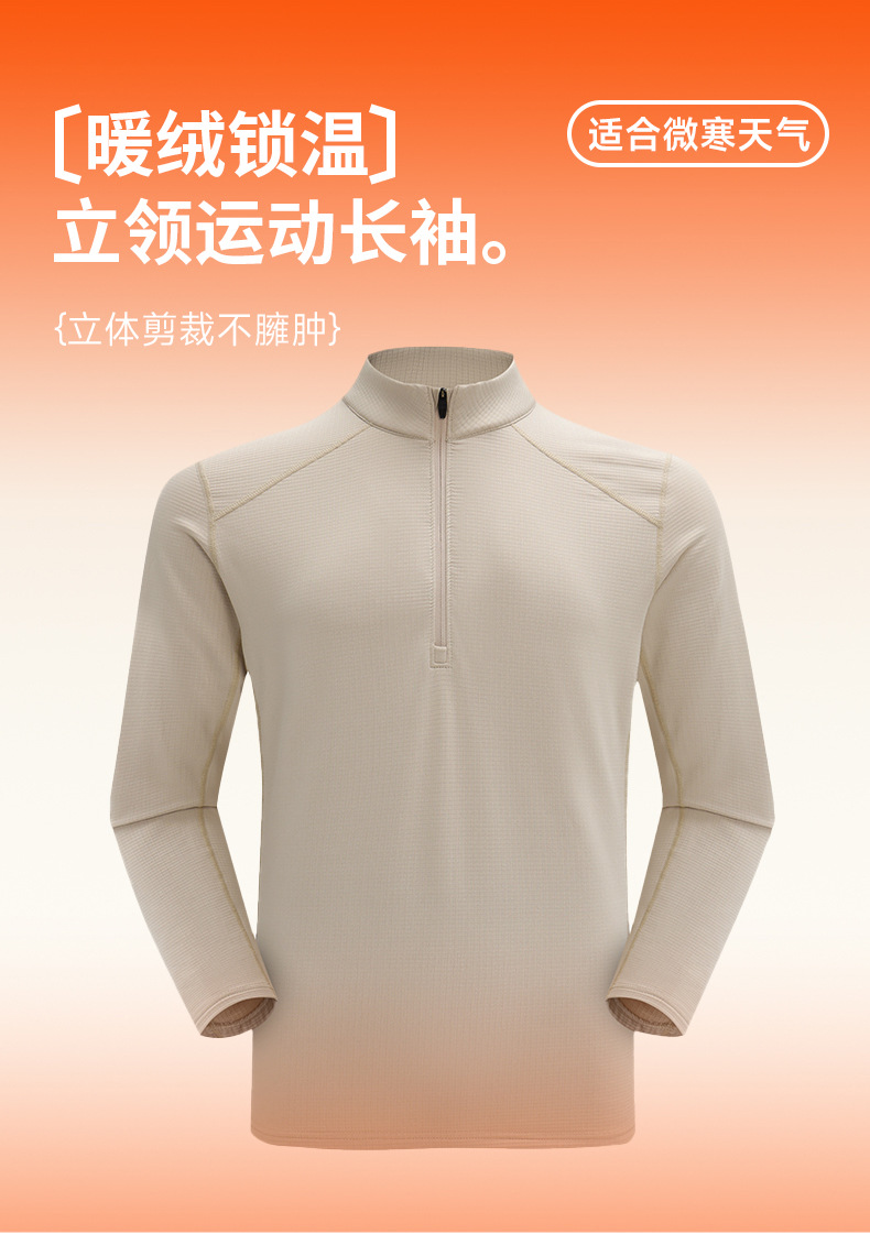速干长袖T恤秋冬男加绒保暖跑步休闲运动户外透气打底半拉链上衣