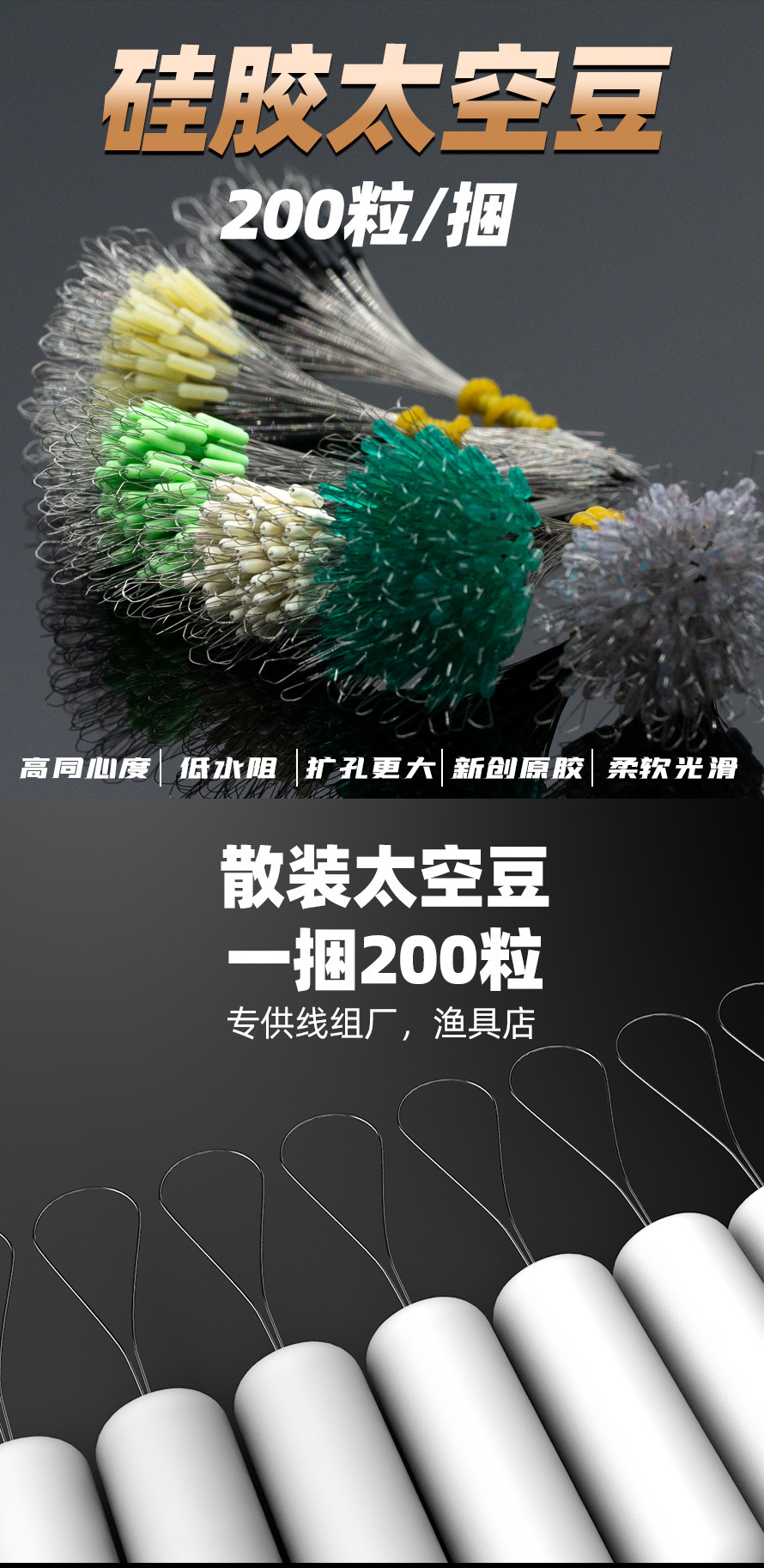 新款正品超紧太空豆硅胶特级散装精品竞技超小小号钓鱼主线小配件