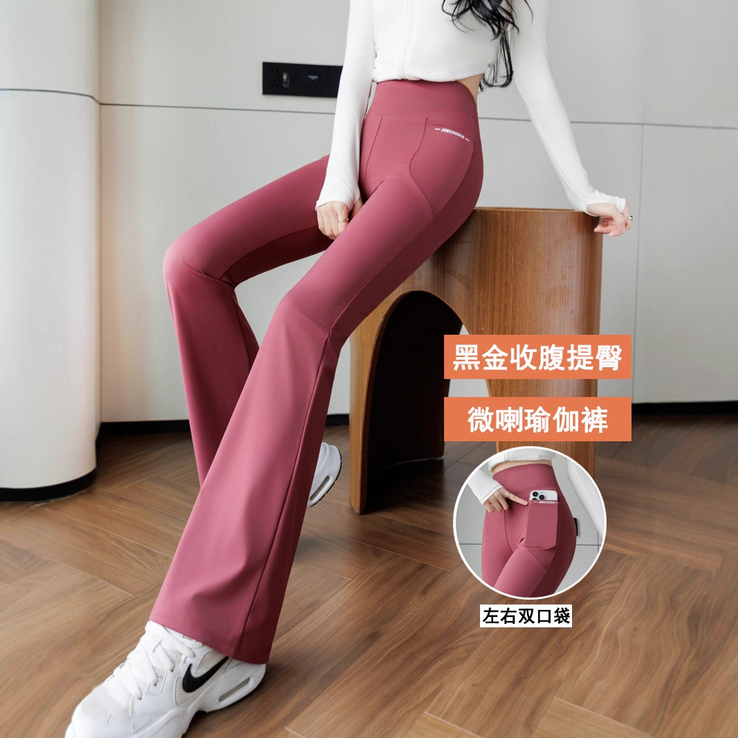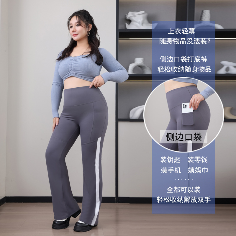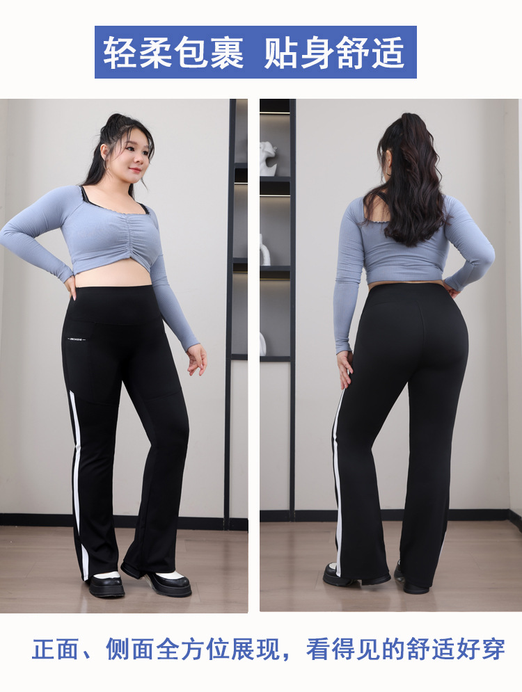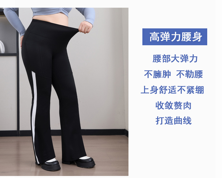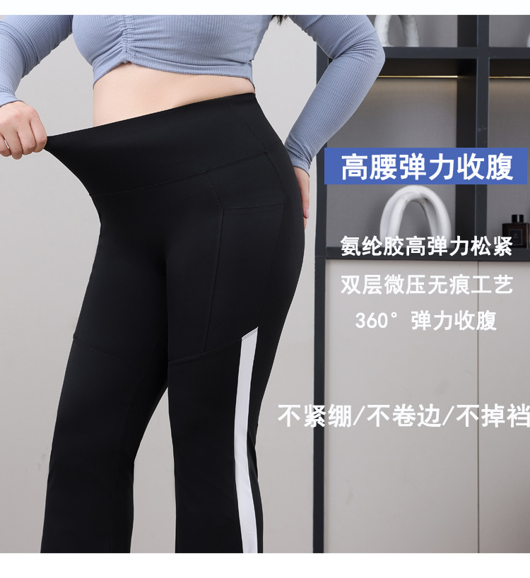 高腰收腹微喇裤双口袋显瘦鲨鱼喇叭裤黑金提臀外穿加长大码打底裤