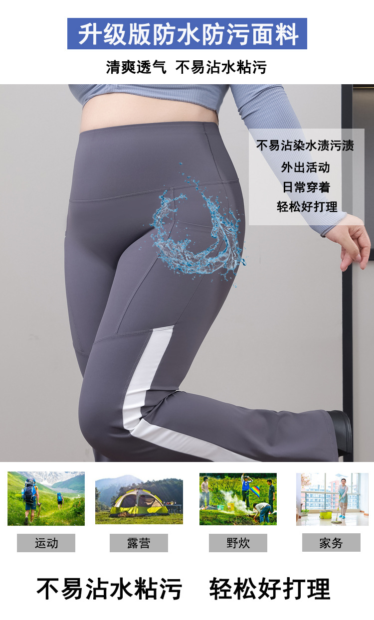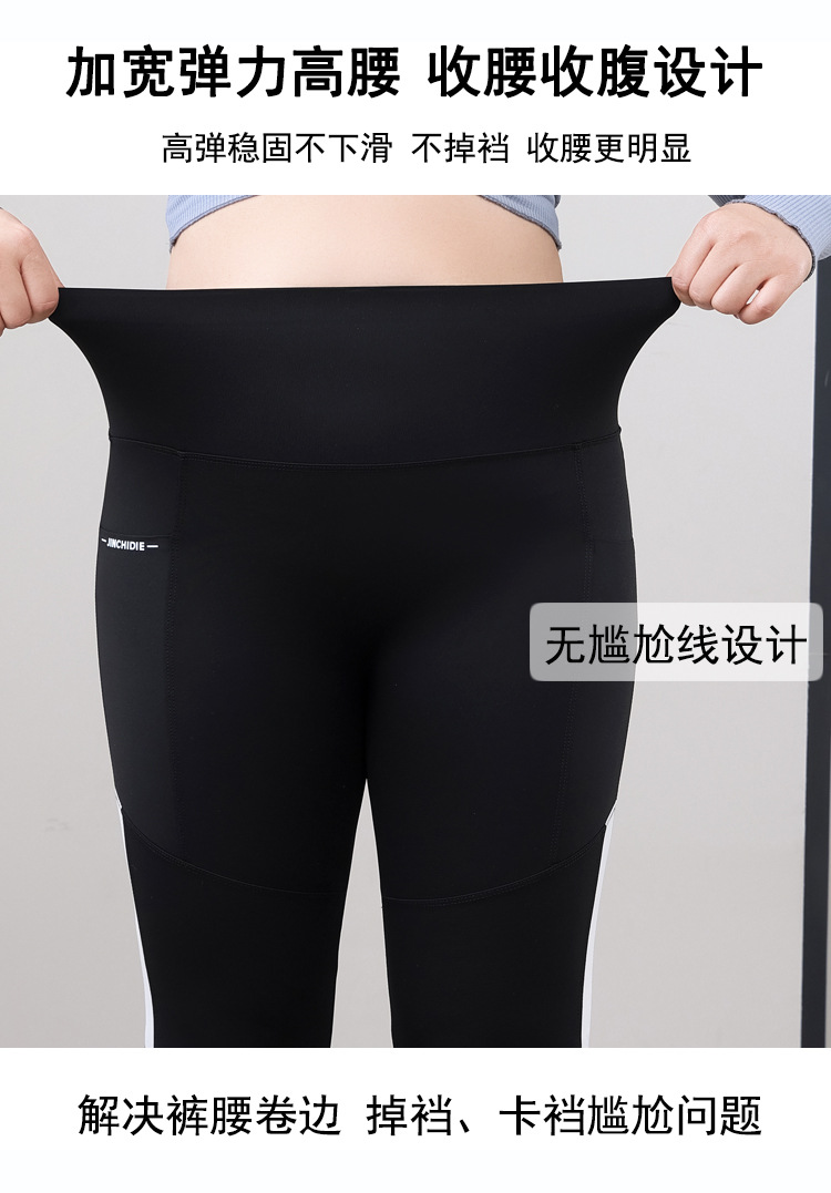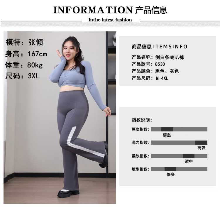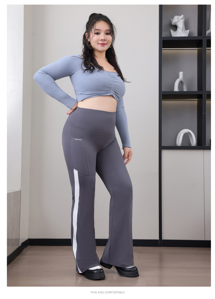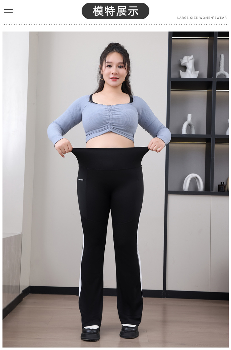 高腰收腹微喇裤双口袋显瘦鲨鱼喇叭裤黑金提臀外穿加长大码打底裤