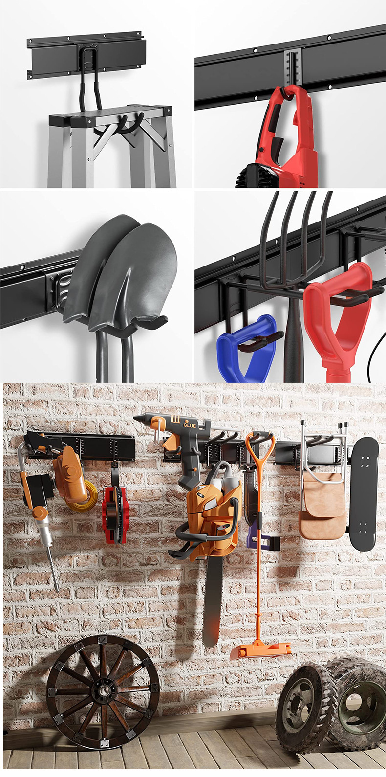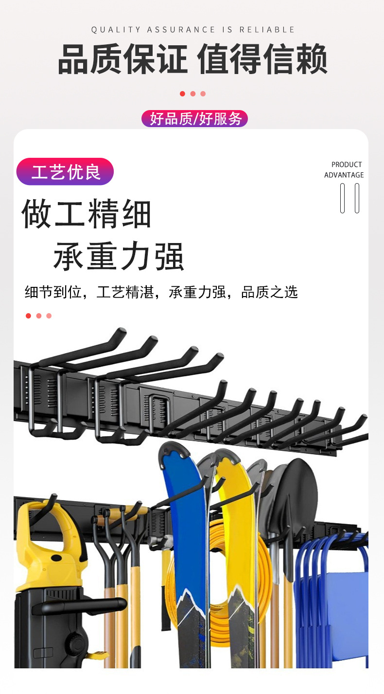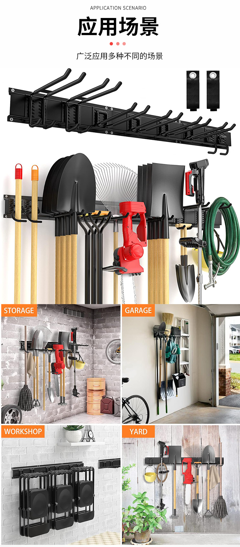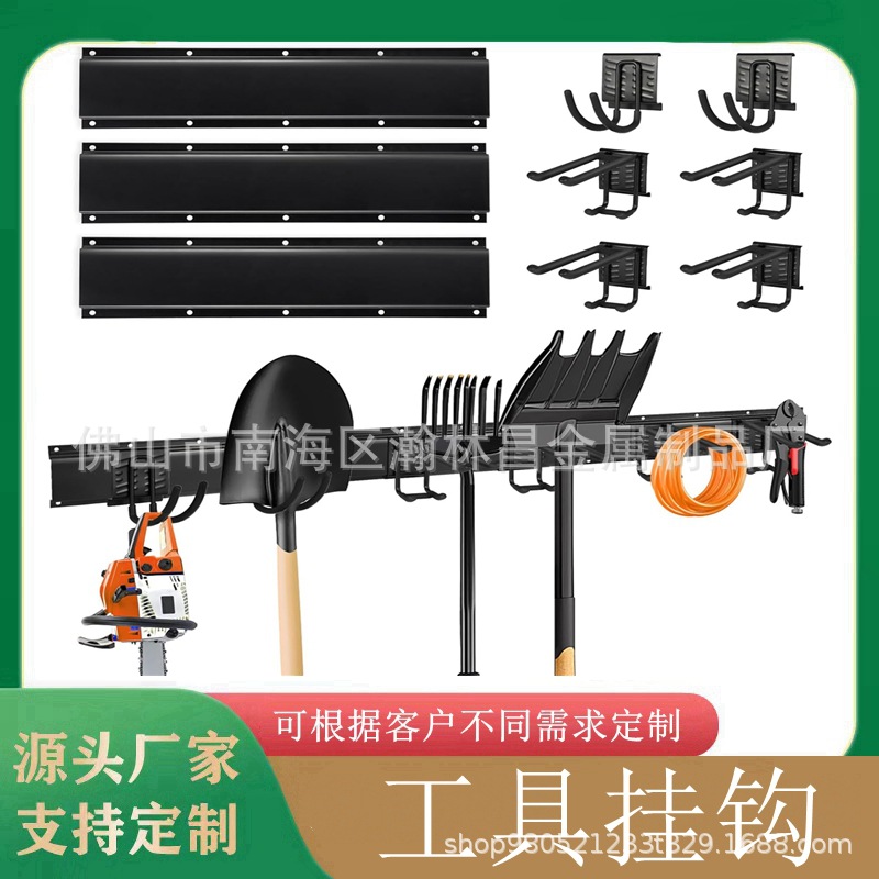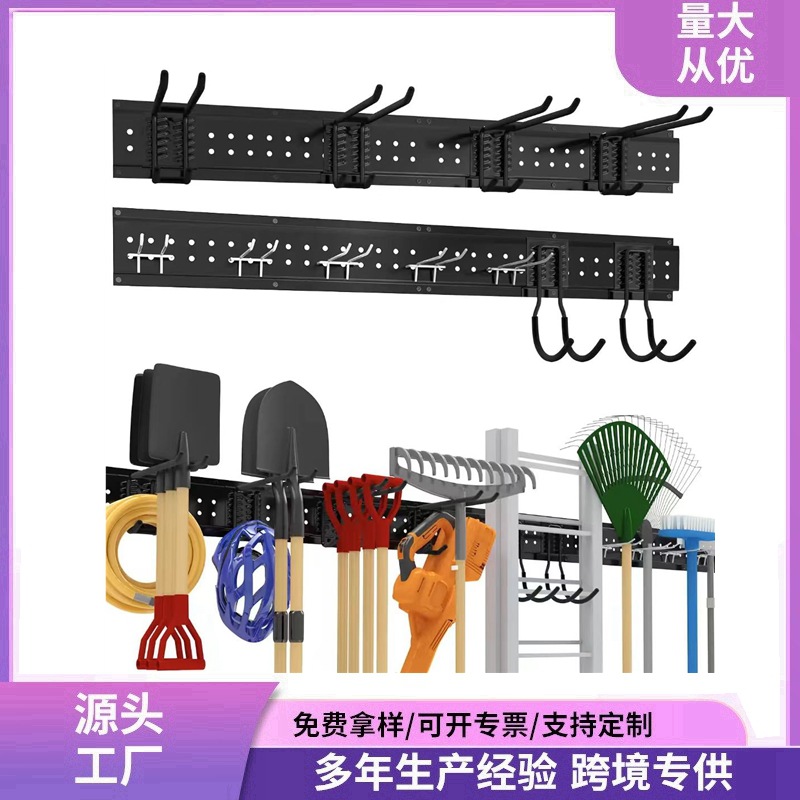 园艺收纳架可调节金属车库挂钩 壁挂式重型存储铲子工具槽板挂钩