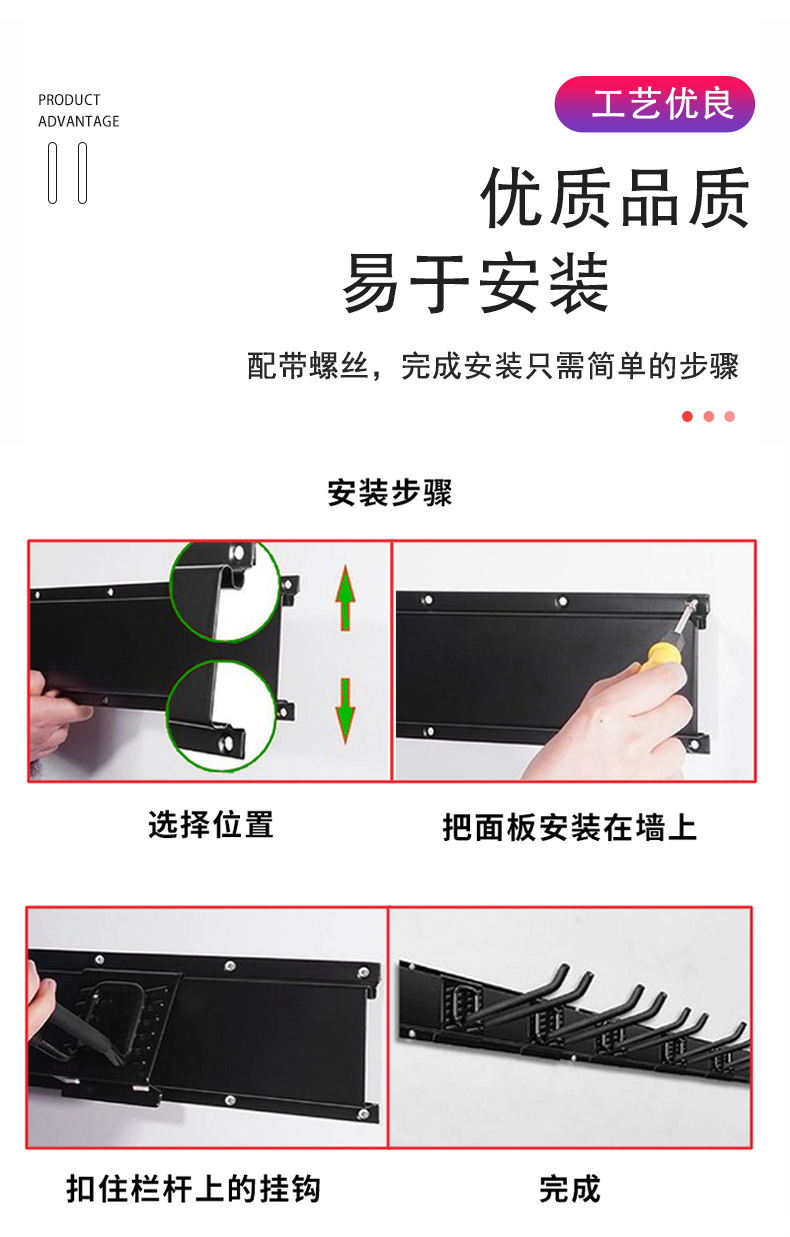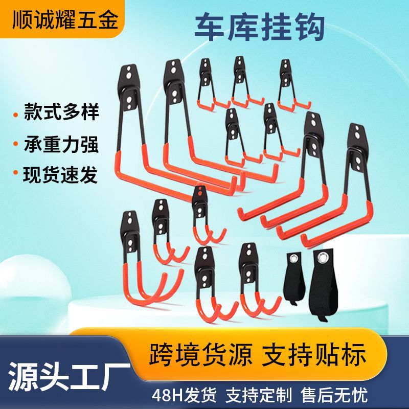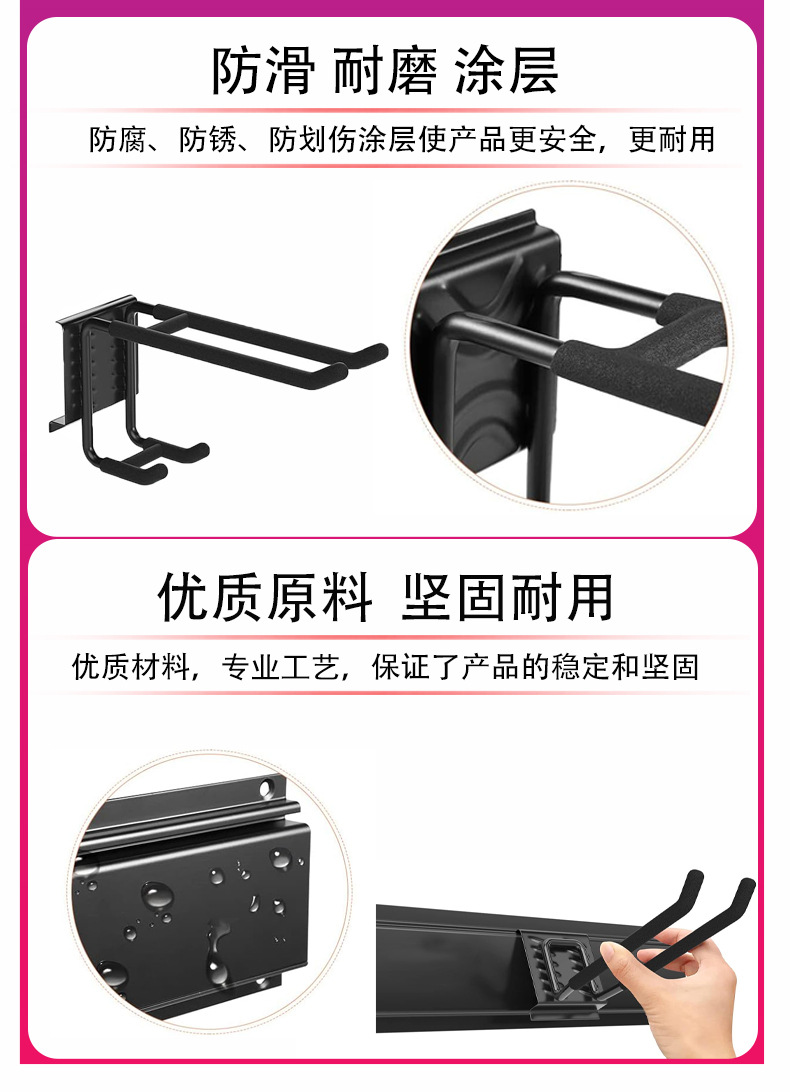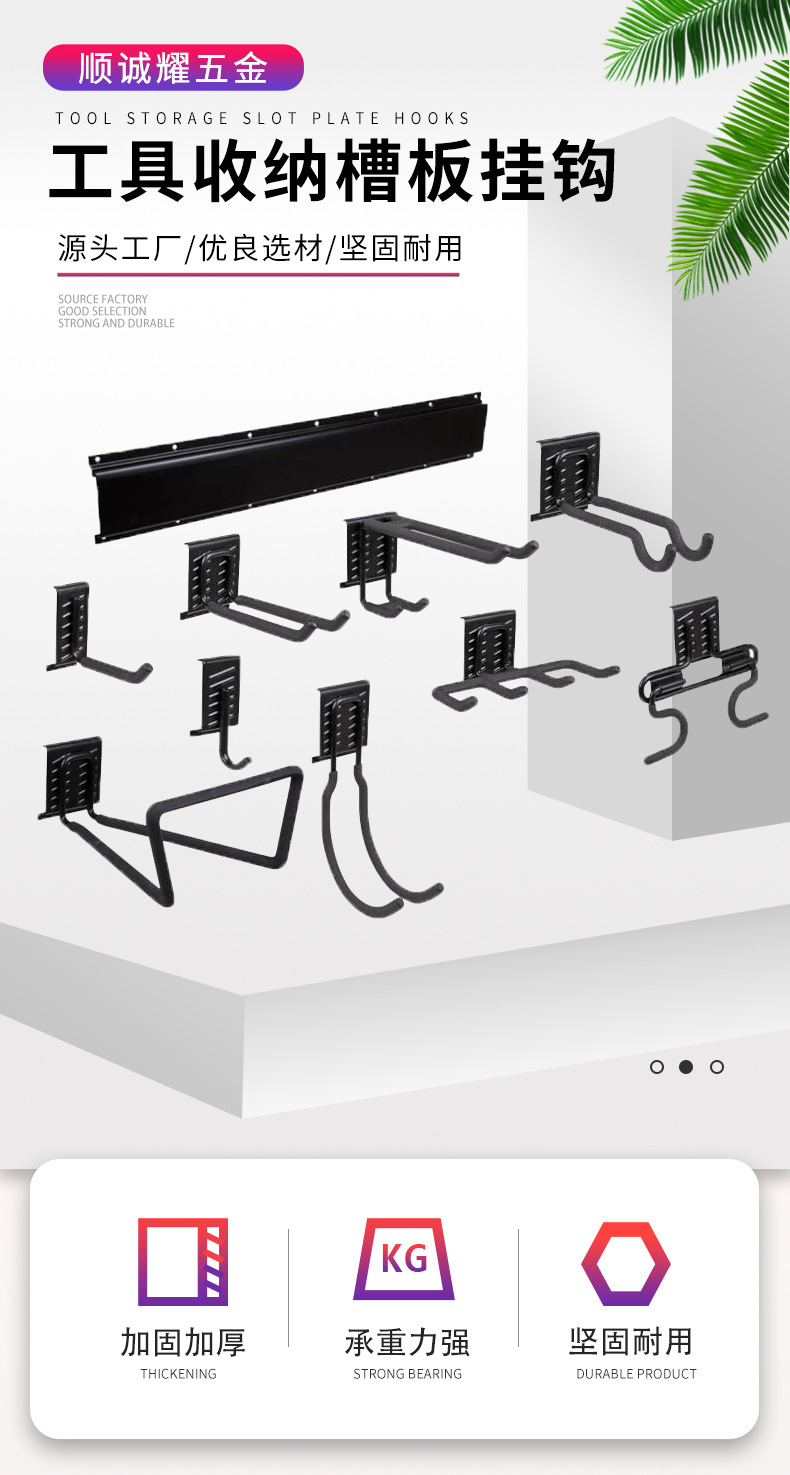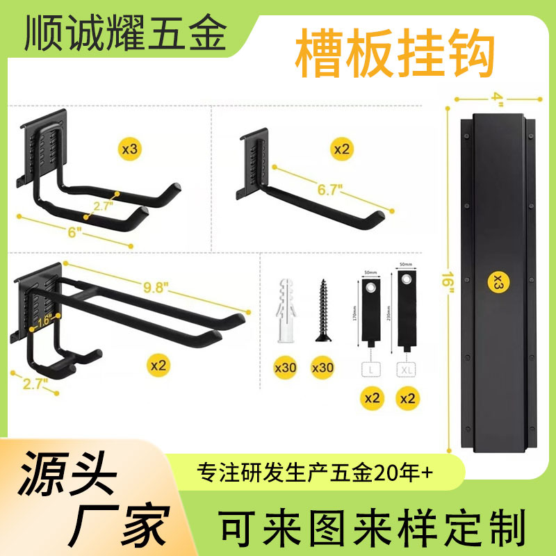 园艺收纳架可调节金属车库挂钩 壁挂式重型存储铲子工具槽板挂钩