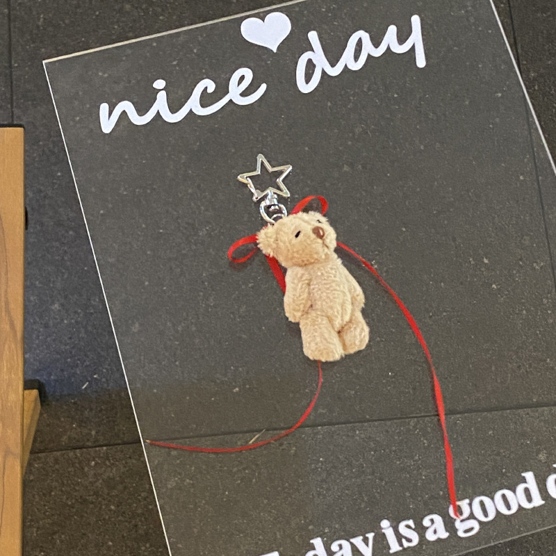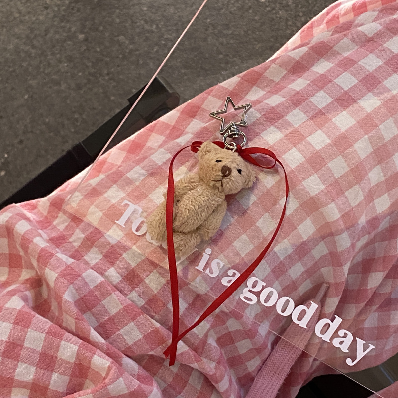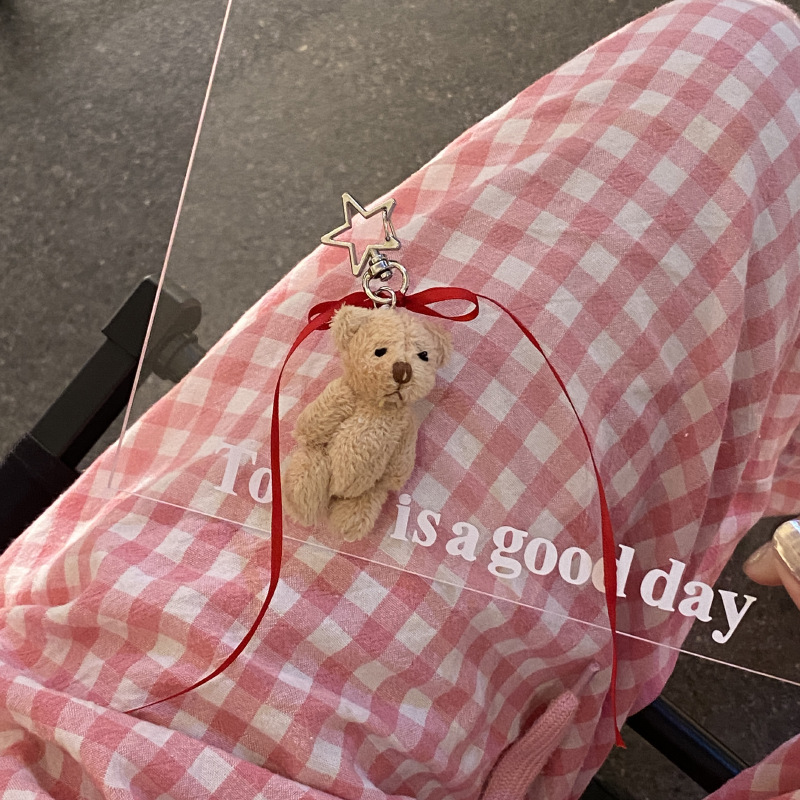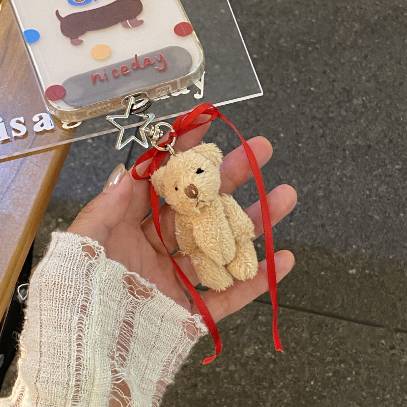 星呆萌かわいいぬいぐるみの熊の子供の鍵は赤い蝶結びのリボンの関節の熊の包みのペンダントを掛けます。