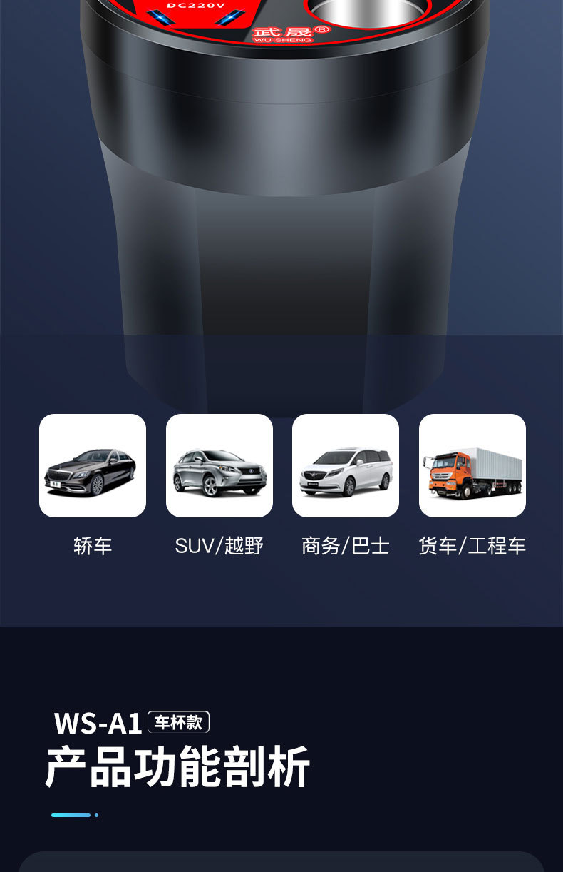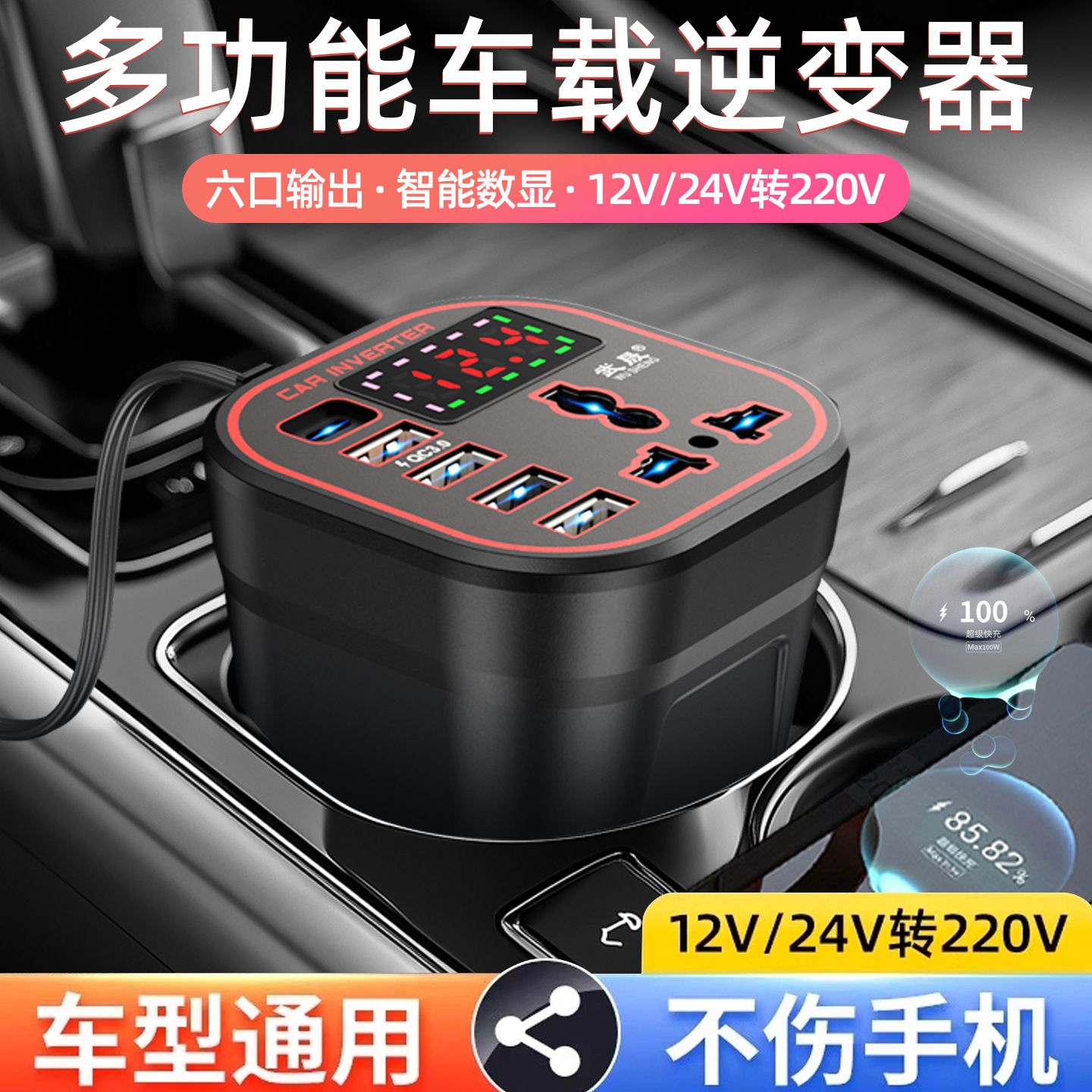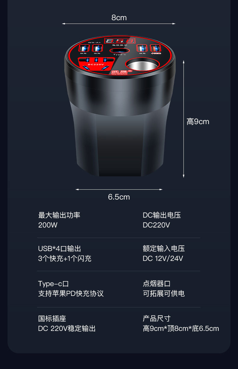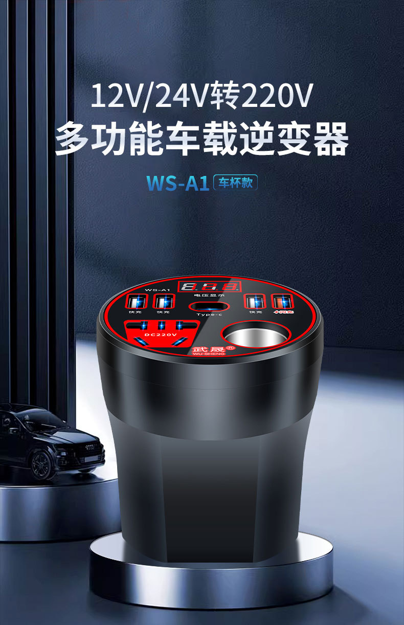車載カップ型インバータ12v 24v 220vハイパワー多機能車載充電器汎用車載電源