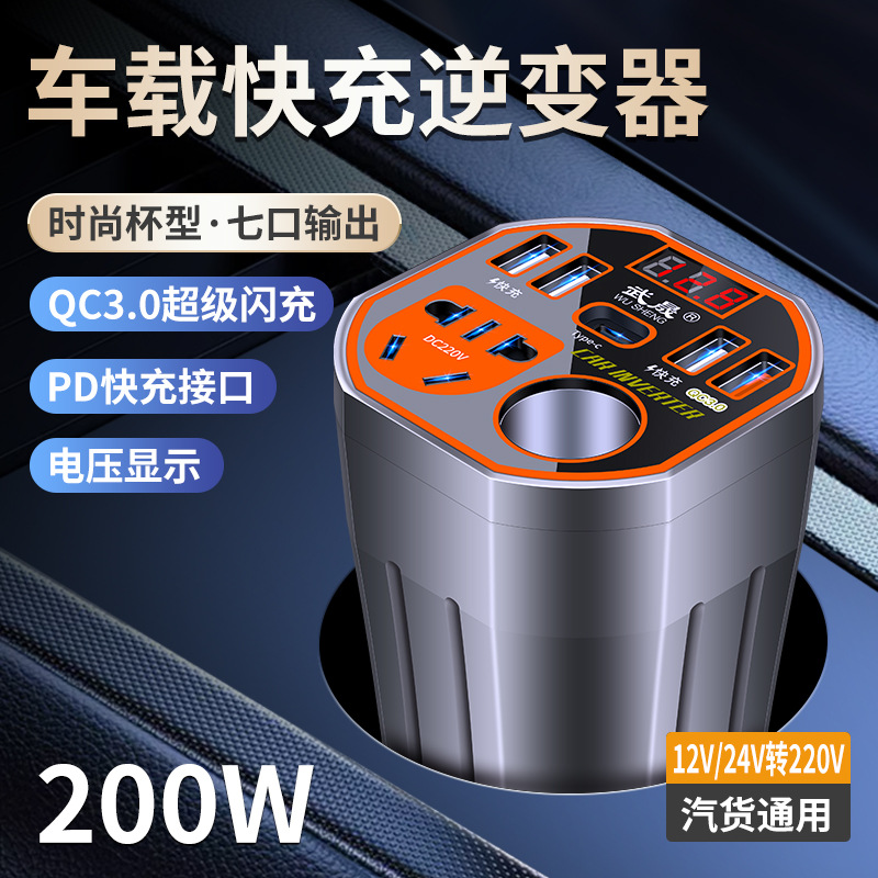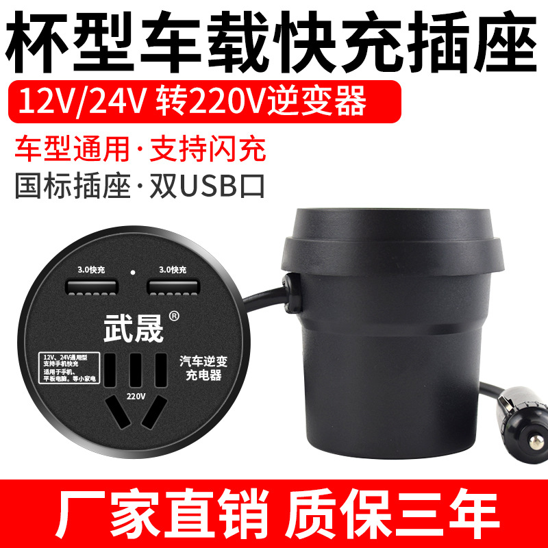 車載インバータカップ型12V24V回転220V自動車トラック汎用電源変換器フラッシュ充電器