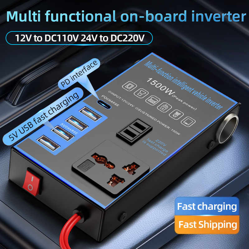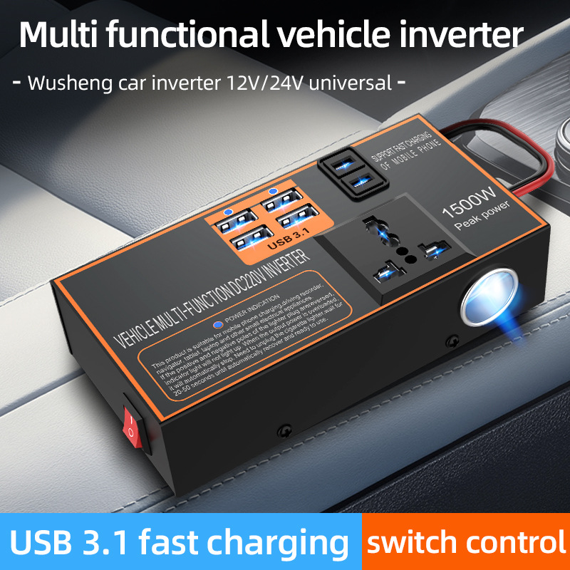 車載インバーター12v24v回転220vボルトハイパワー自動車電源変換器多機能コンセント充電器