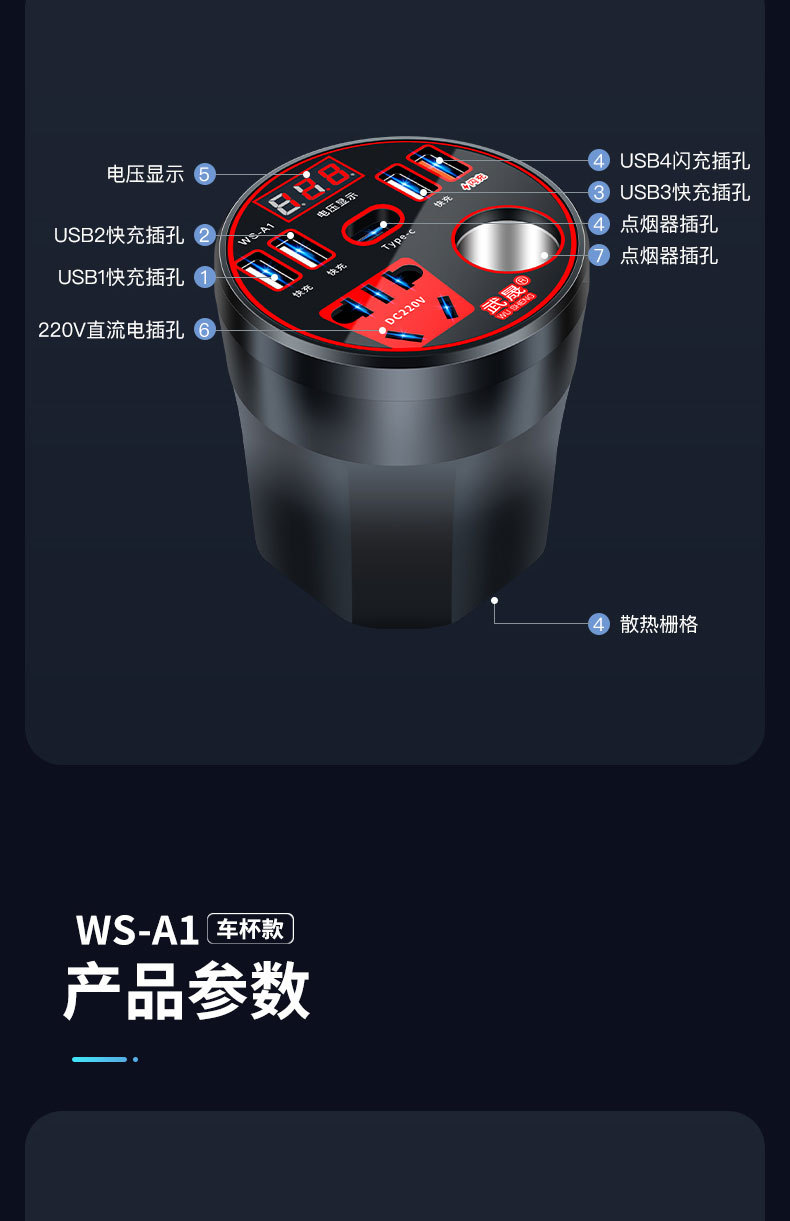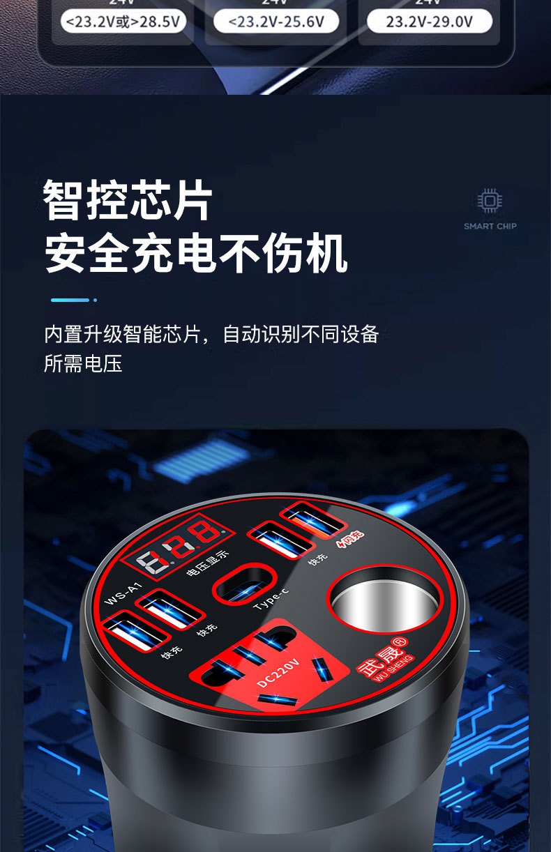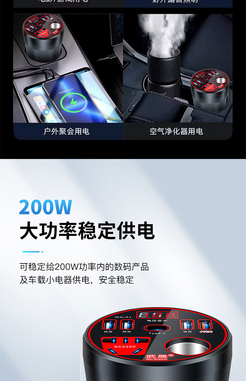 车载充电器杯逆变器转换器12v24v转220v多功能插座电源汽车货车充
