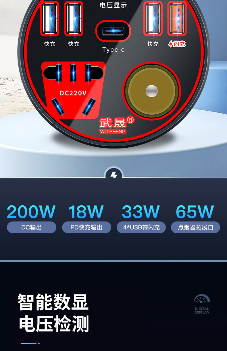 クロスボーダー車載インバータ12V24V回転220Vトラック電源変換器多機能自動車ソケット充電器