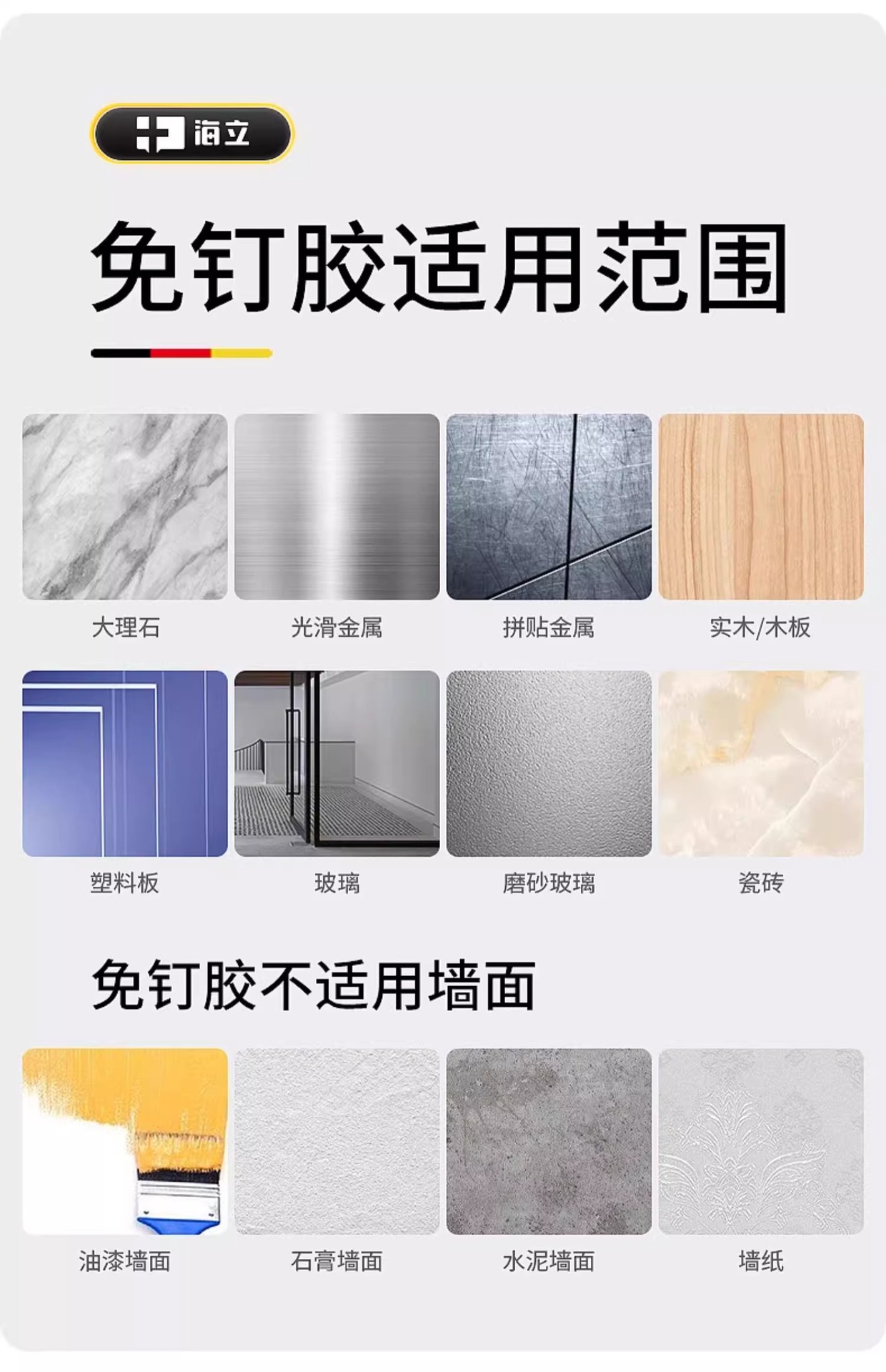 ユニバーサル釘接着剤、釘不要接着剤、パンチング不要、痕跡なし、高粘度強力接着剤、鉄に接着、壁に接着、速乾性